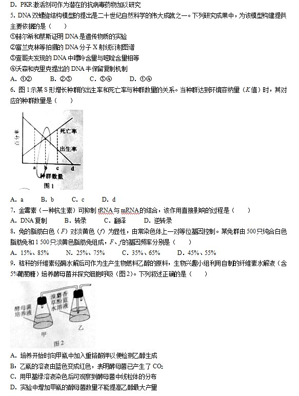 D由题意可知,激活蛋白激酶PKR,可诱导被病毒感染的细胞发生凋亡,故PKR激活剂可作为潜在的抗病毒药物加以研究,D正确。