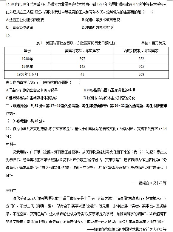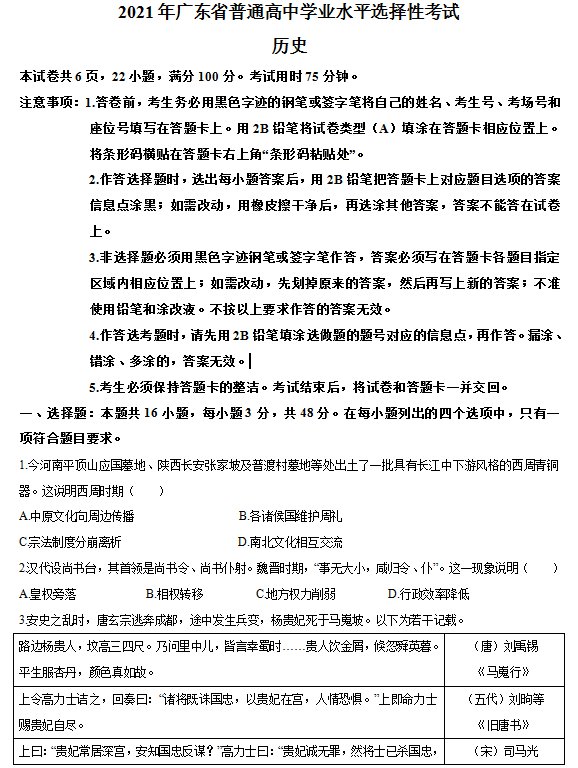 2021广东高考历史试卷真题+答案详解(2021广东高考历史试卷真题 答案详解)