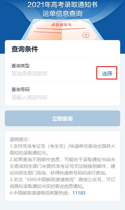 2021广东高考录取通知书EMS快递查询入口: