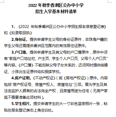 6.2022年秋季香洲区公办中小学招生入学基本材料清单