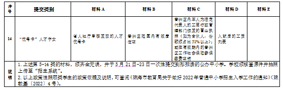 2.2022年秋季珠海市义务教育阶段公办学校政策性照顾生证明材料一览表