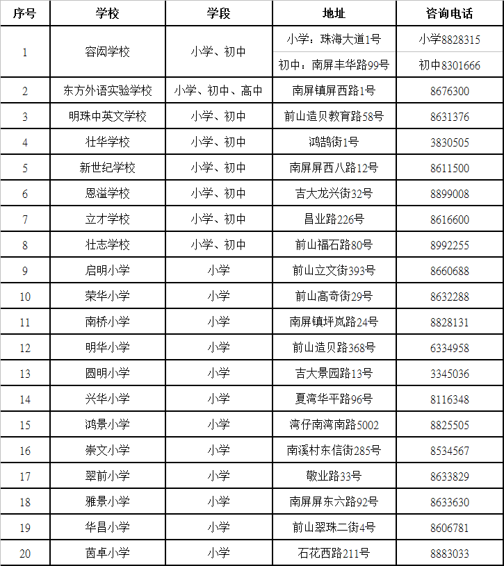 11.2022年秋季香洲区民办学校招生咨询电话