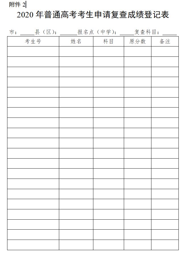 下载入口:2020年普通高考考生申请复查成绩登记表