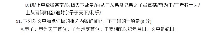 11.D【解析】本题考查古代文化常识。根据文意也可推知,庶务不是专指朝堂急务,是指国家各种政务。亦指这些事务的经办人员。