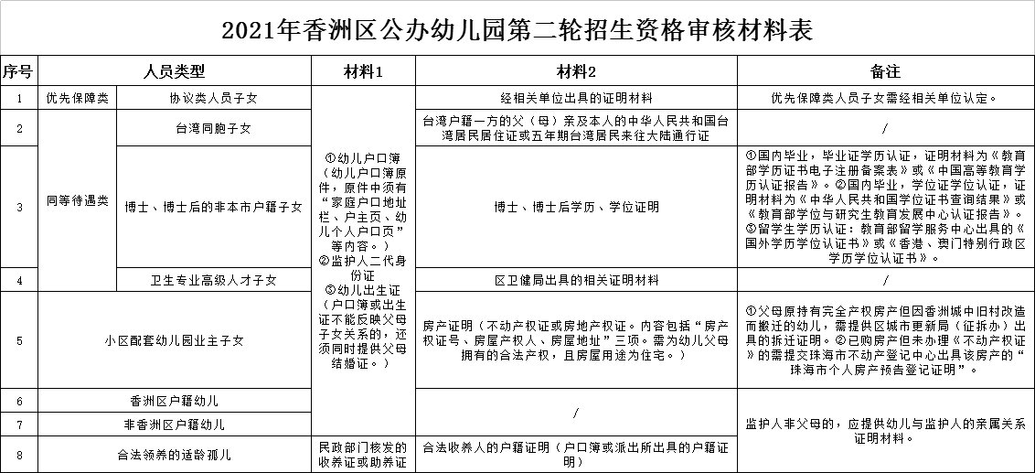 2021香洲区公办幼儿园第二轮招生资格审核指引(时间+材料)