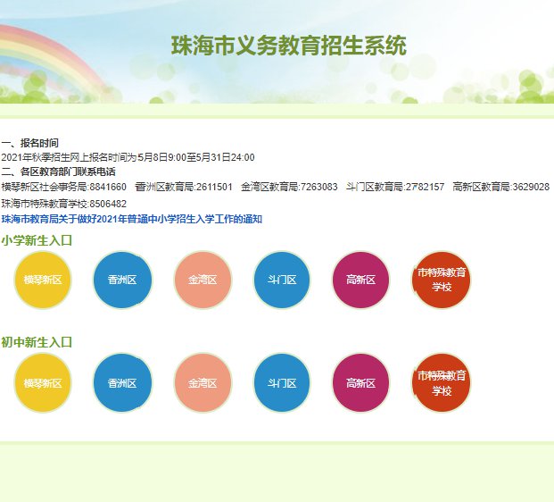 2021珠海积分入学网上报名时间+报名入口