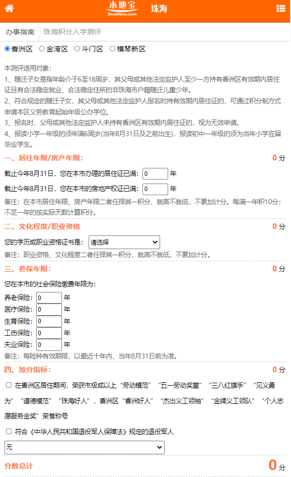 2022珠海各区积分入学测评入口 珠海积分入学2019
