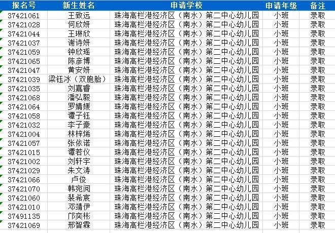 2021珠海金湾区公办幼儿园第二轮招生录取名单(持续更新)