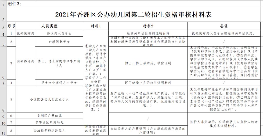 持相关证明材料原件和复印件,携幼儿到幼儿园进行资格审核。资格审核所需材料详见下图:《2021年秋季香洲区公办幼儿园第二轮招生工作实施细则》。