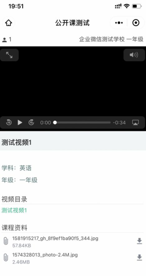学课程时,如果课程有对应的资料,学生可以在课程资料列表中点击下载按钮进行下载。
