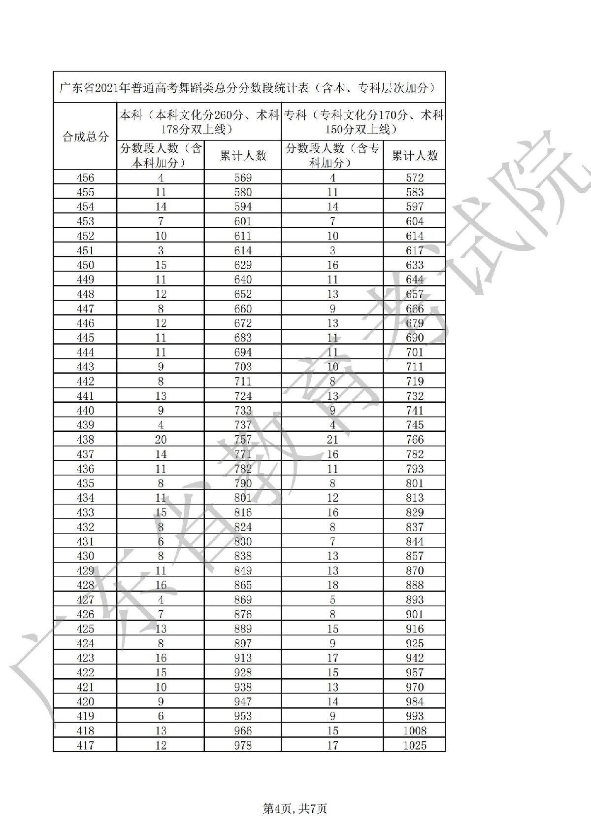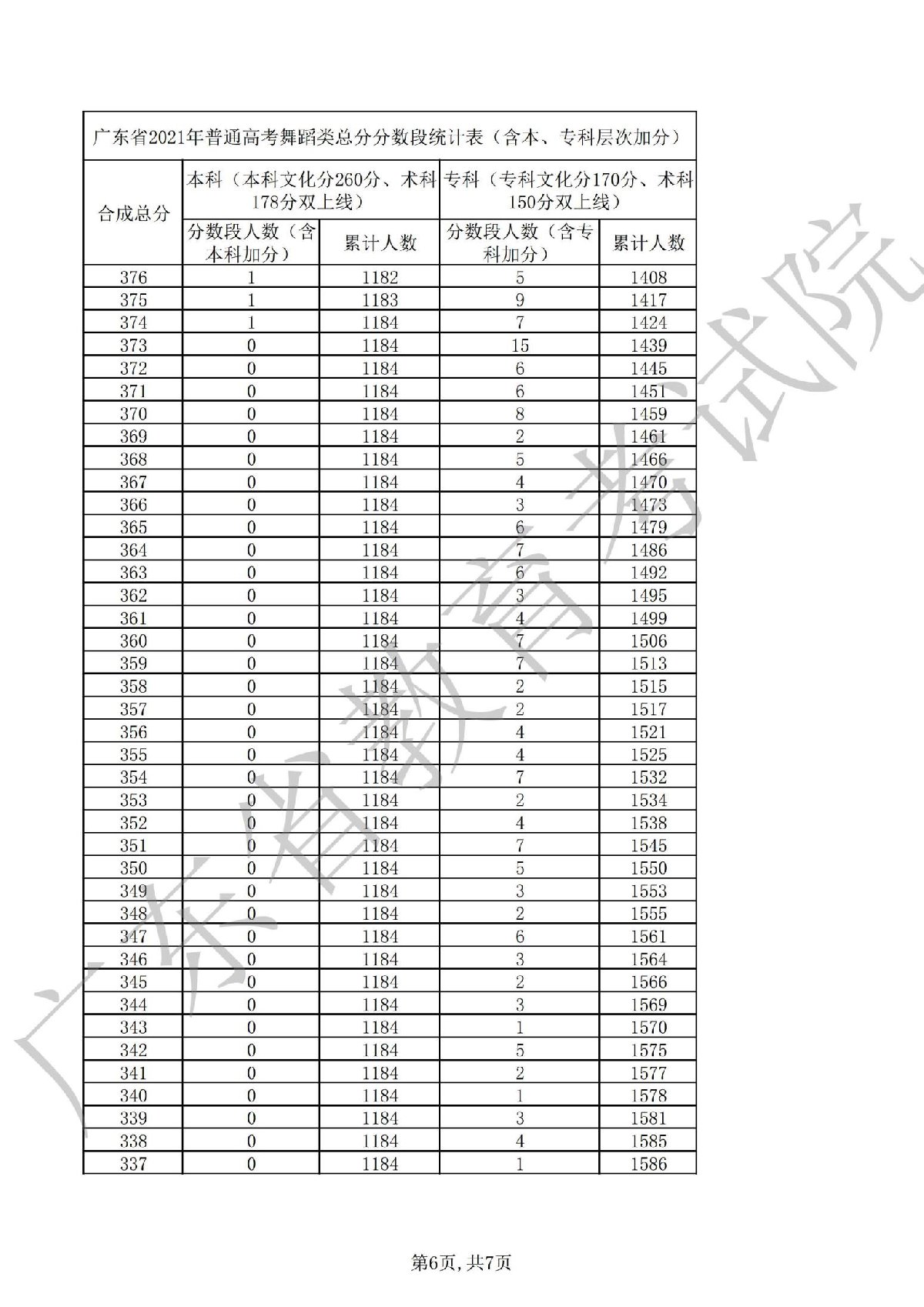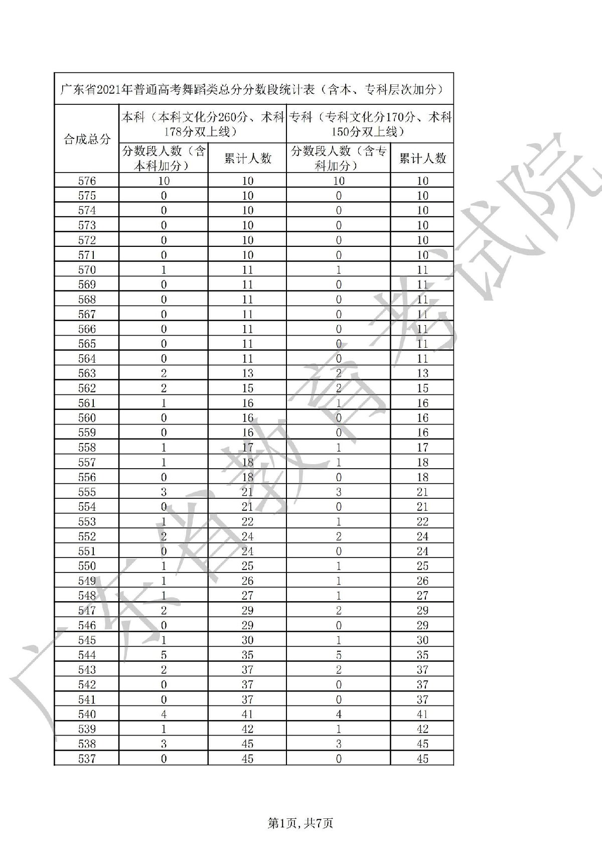 2021广东高考舞蹈一分一段表(广东省2021高考分数一分一段表)