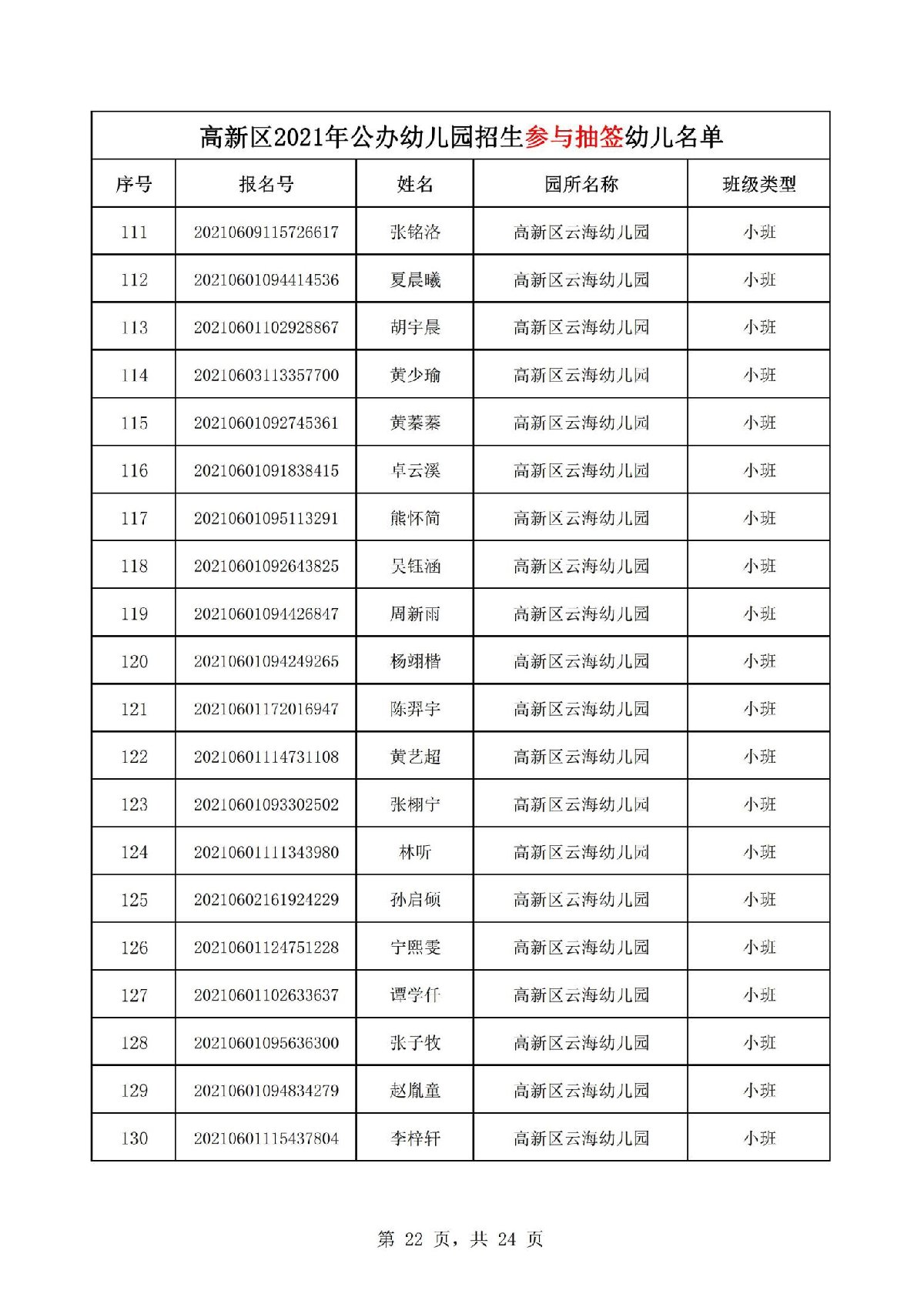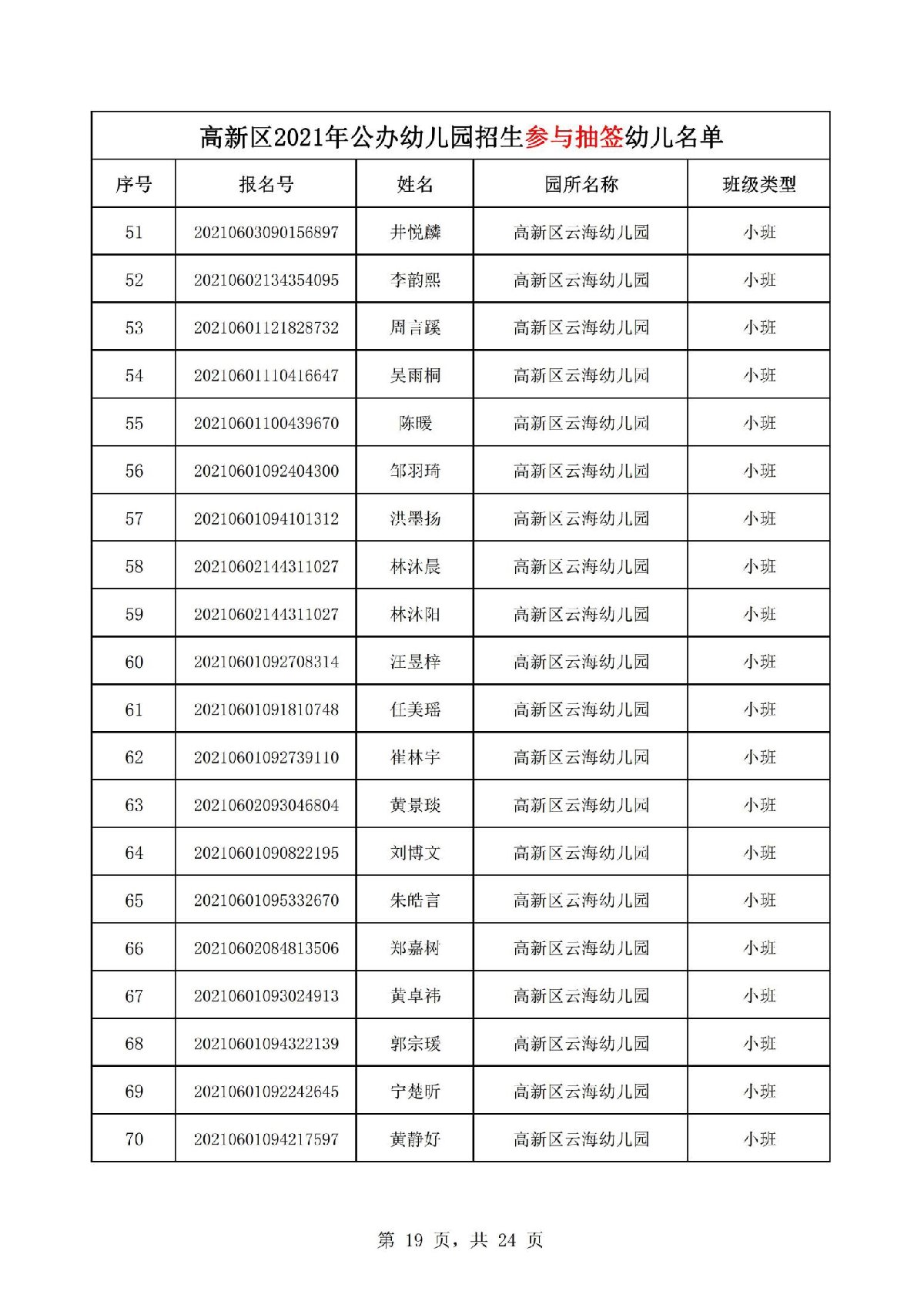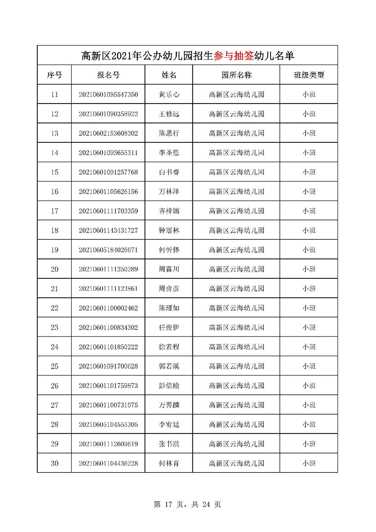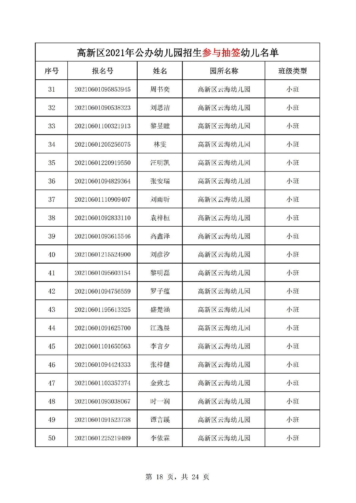 按照《珠海高新区2021年公办幼儿园招生工作方案》的要求,高新区于7月12日公布公办幼儿园2021年招生录取名单及参与抽签幼儿名单。