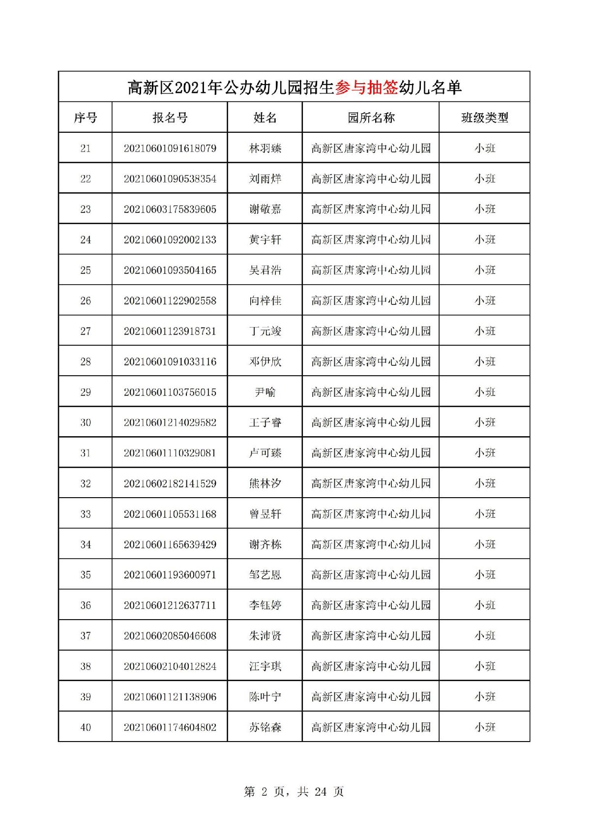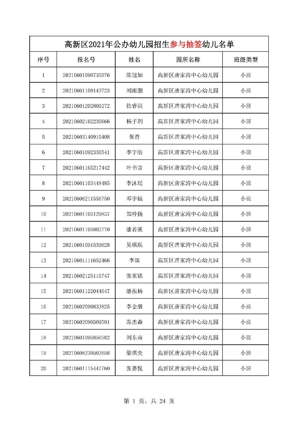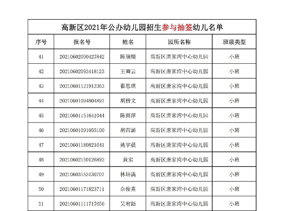 2021珠海高新区唐家湾中心幼儿园参与抽签名单