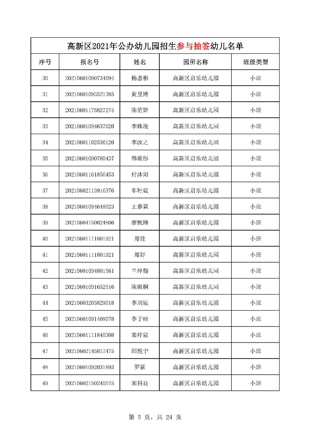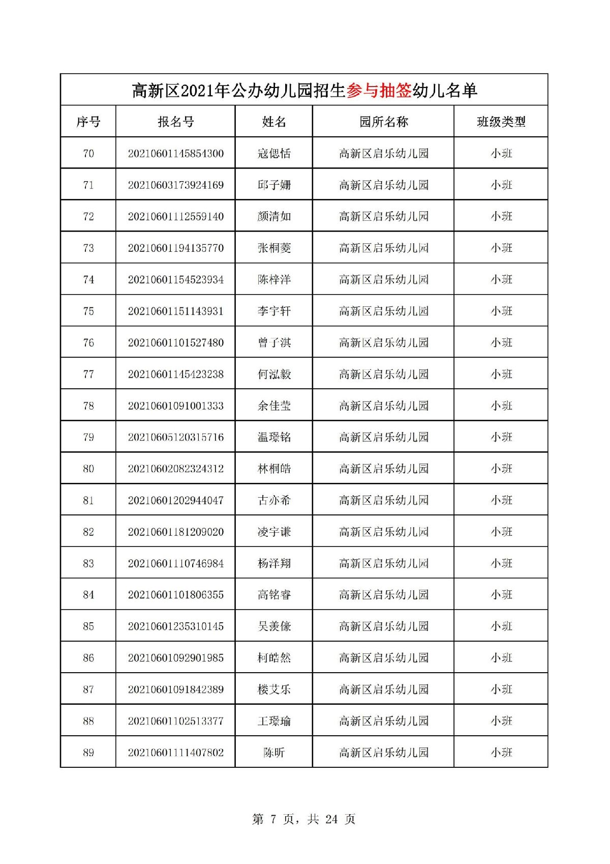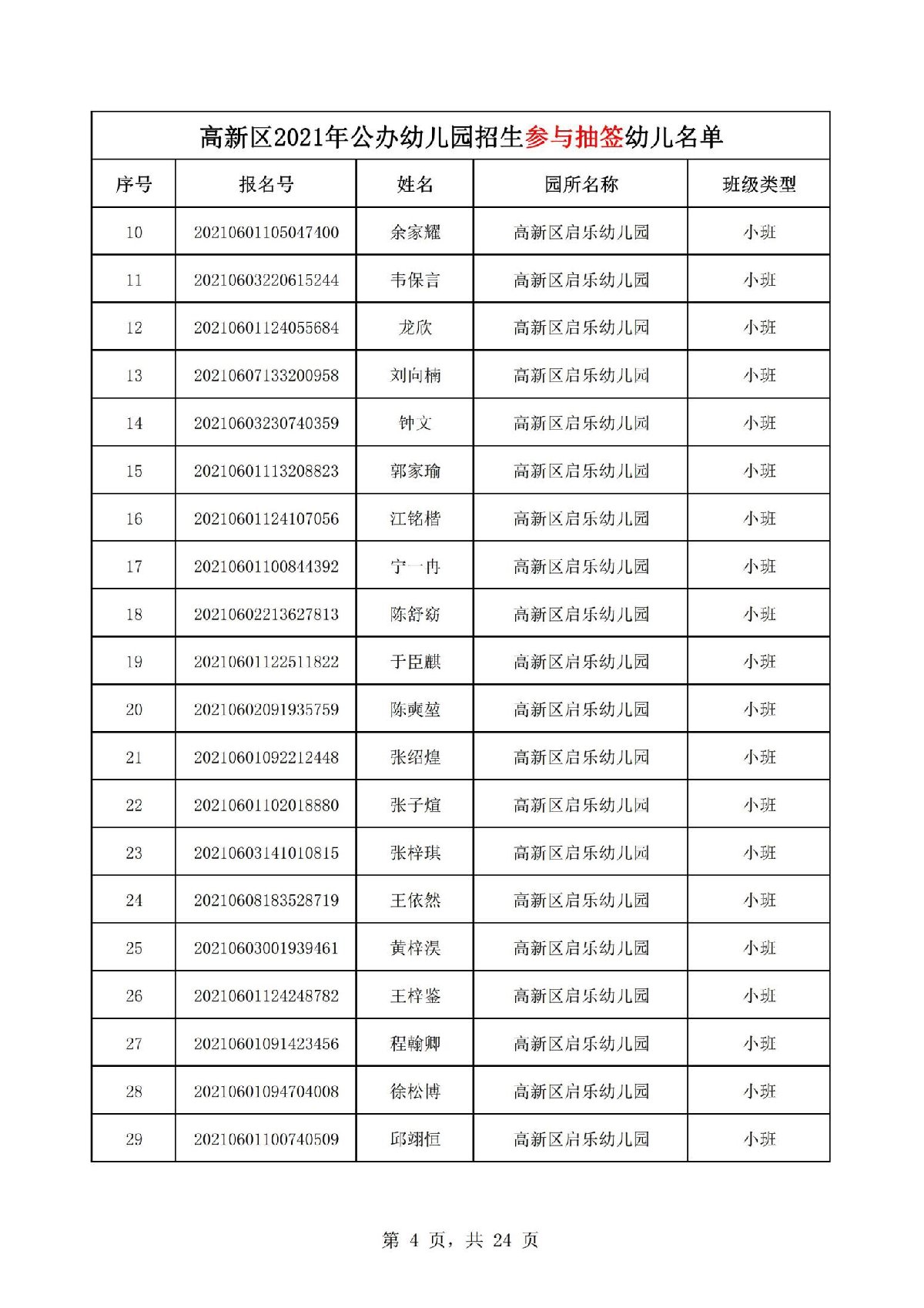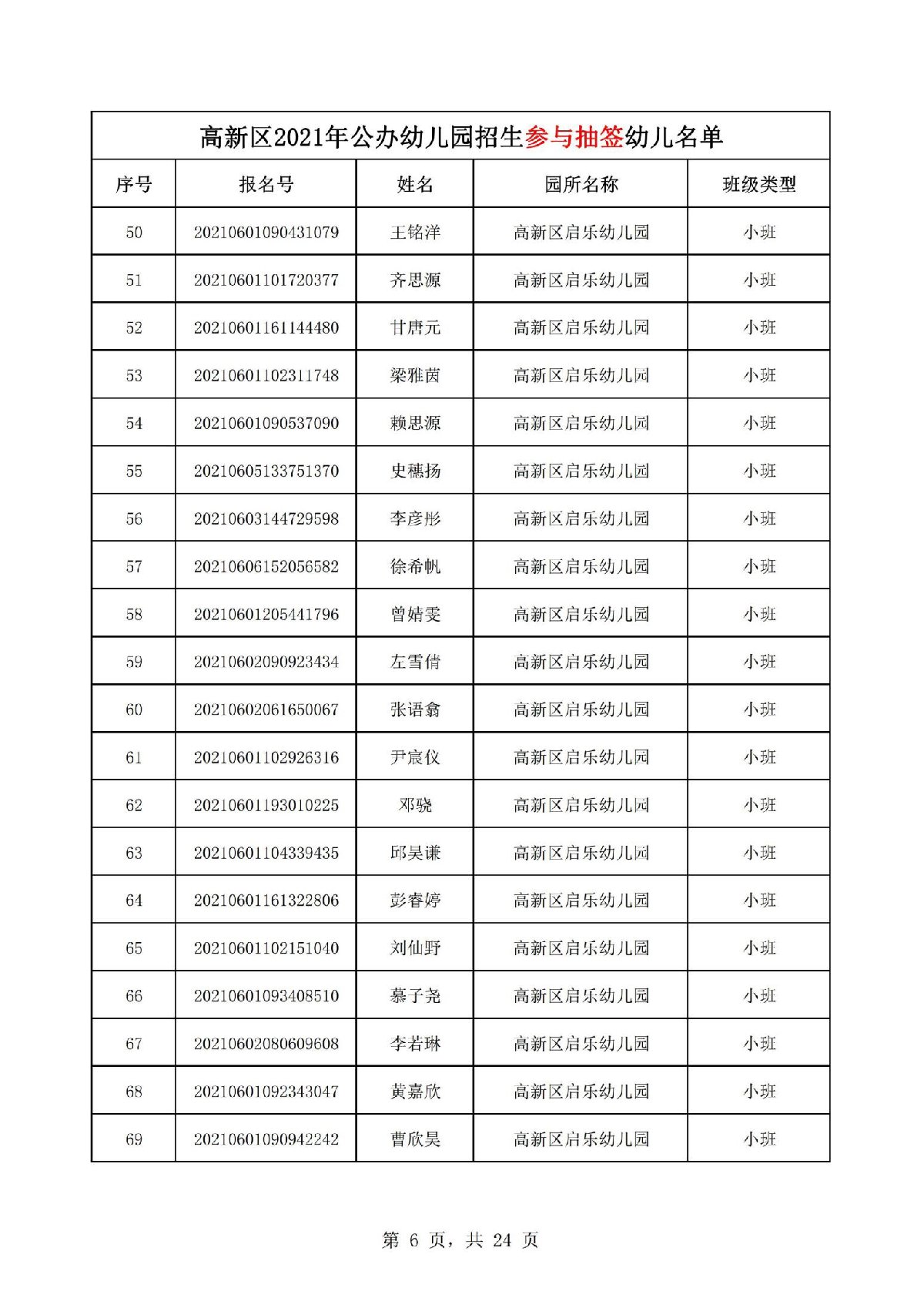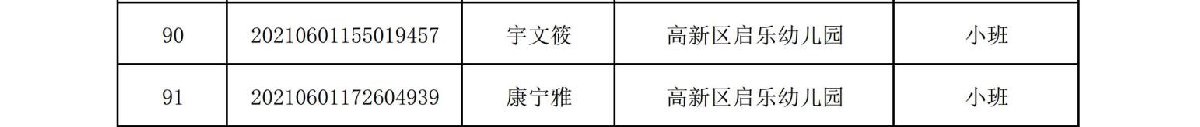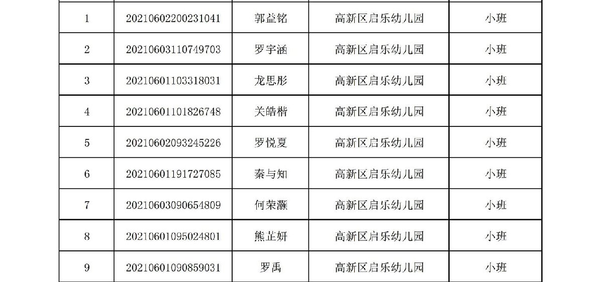 珠海高新区启乐幼儿园2021年参与抽签幼儿名单