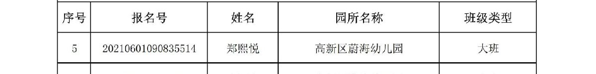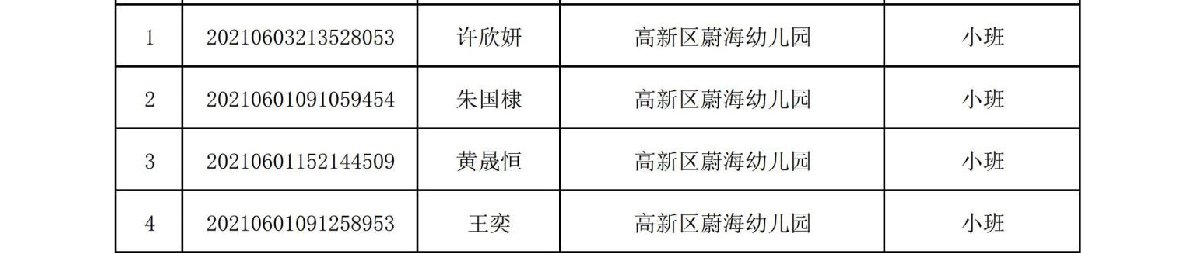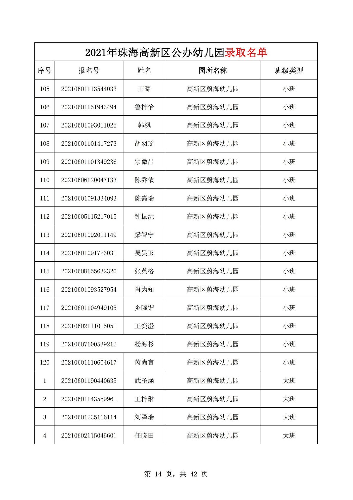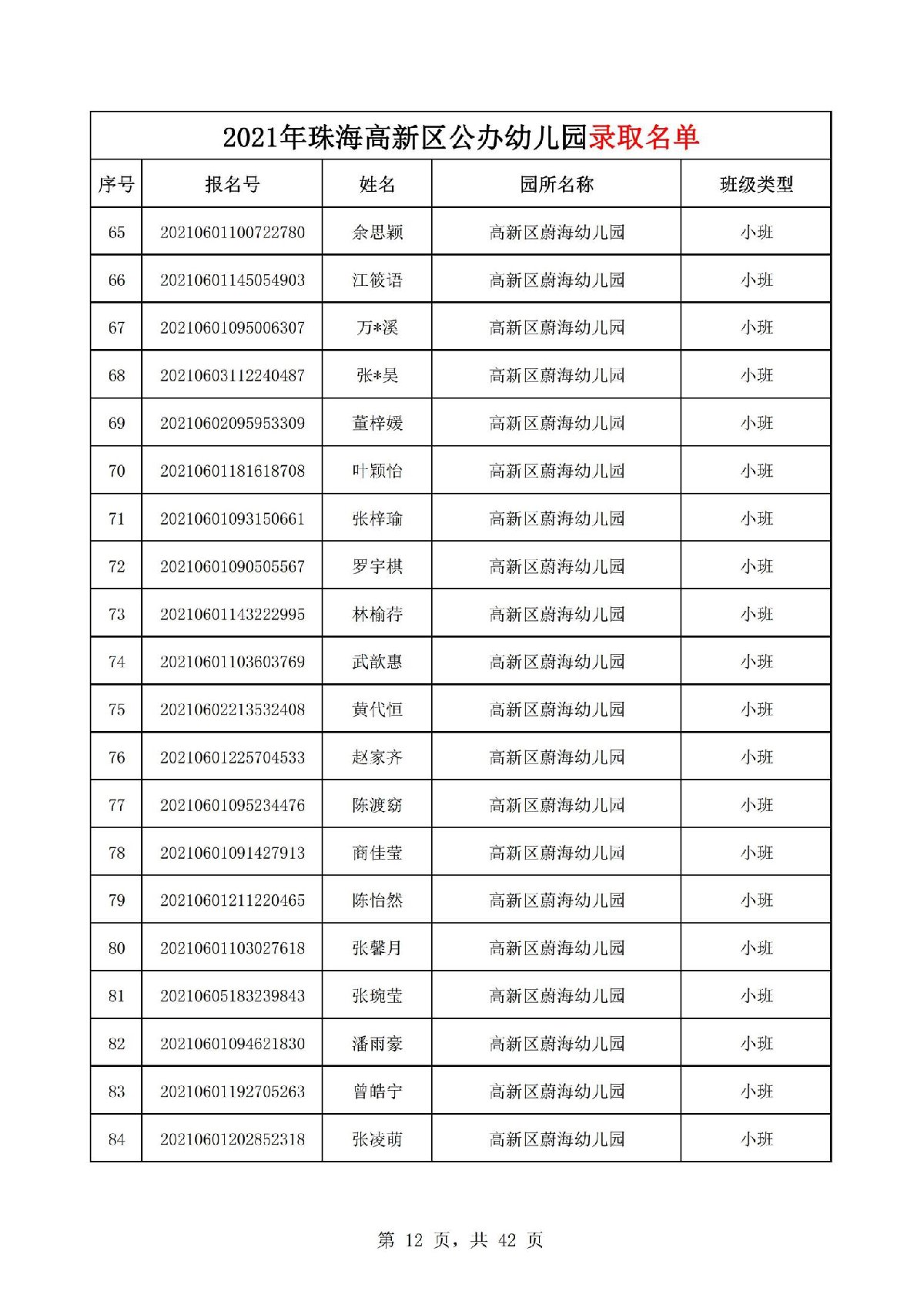 珠海高新区蔚海幼儿园2021秋季录取名单