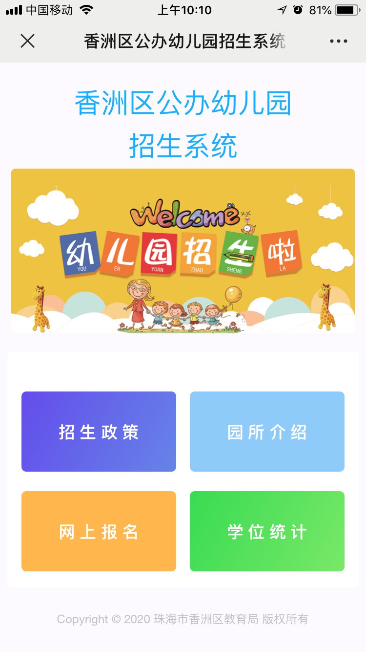 报名入口:“香洲区公办幼儿园招生系统”(手机端)