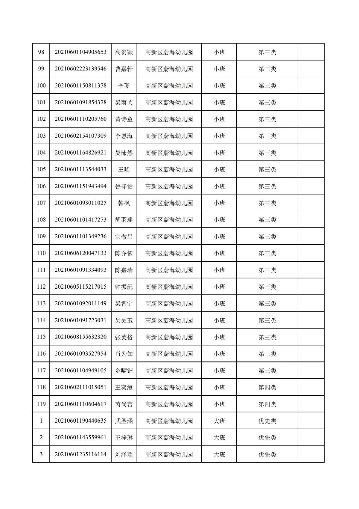 珠海高新区蔚海幼儿园2021年符合报名资格幼儿名单公布,报名幼儿共有124名符合报读资格,其中包括小班119人,大班5人。