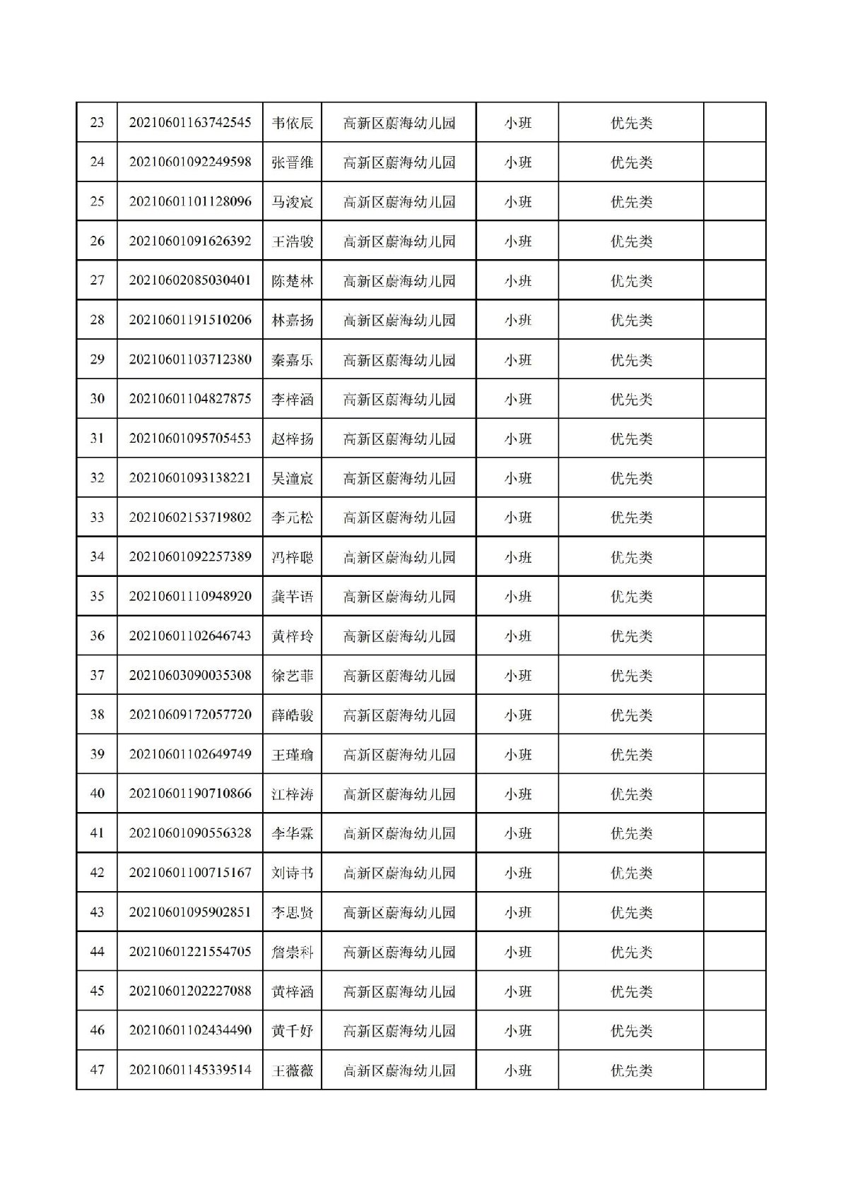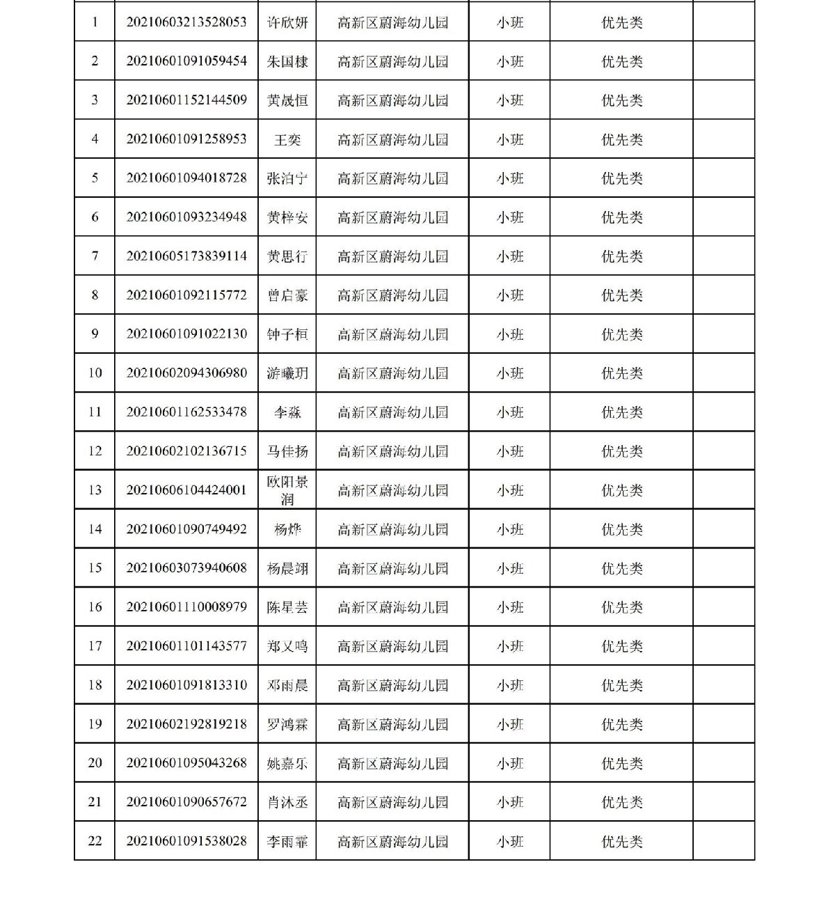 2021珠海高新区蔚海幼儿园符合报名资格名单