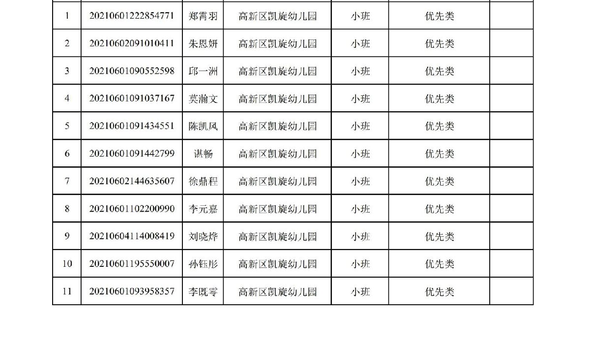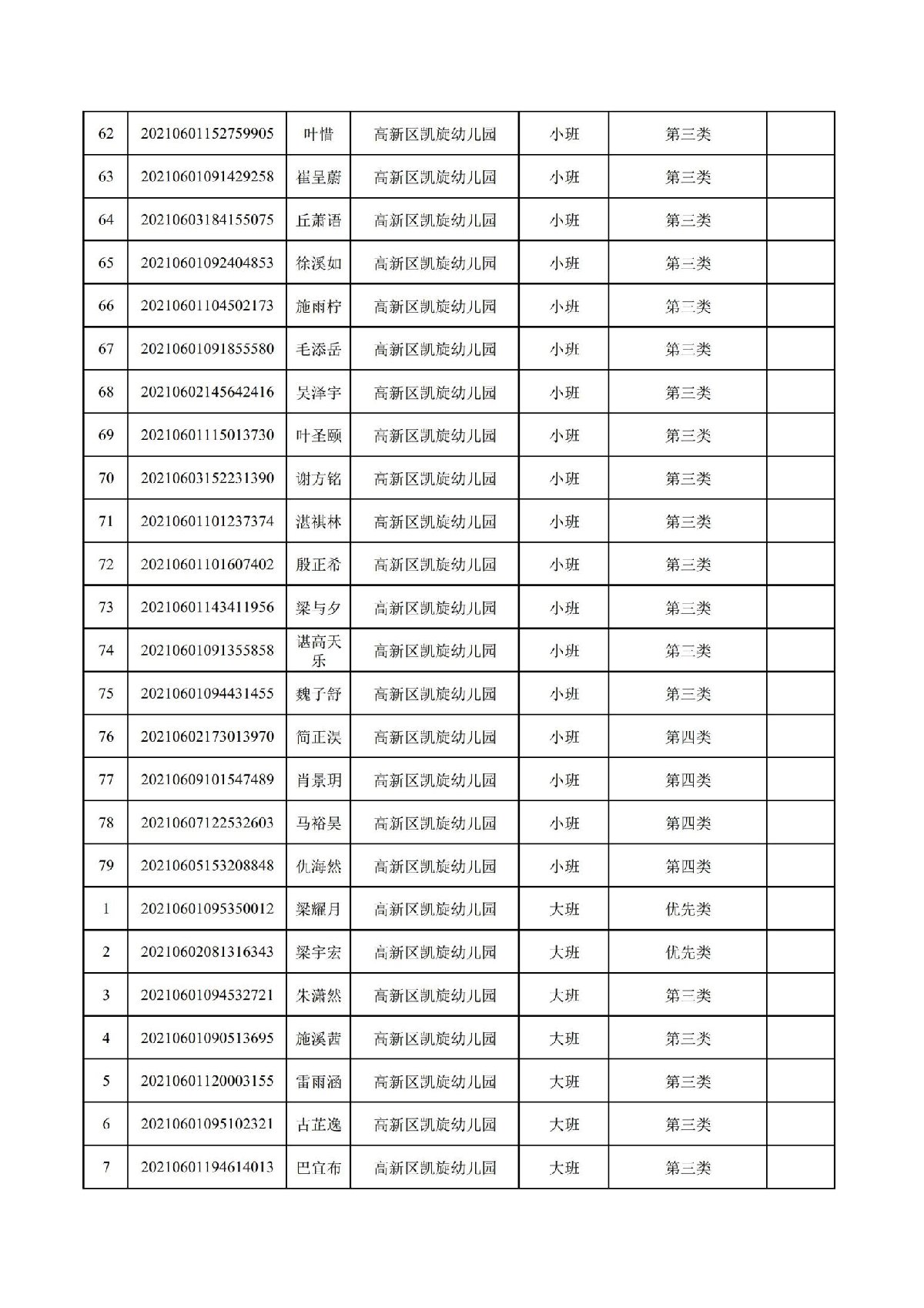 2021珠海高新区凯旋幼儿园符合报读资格名单