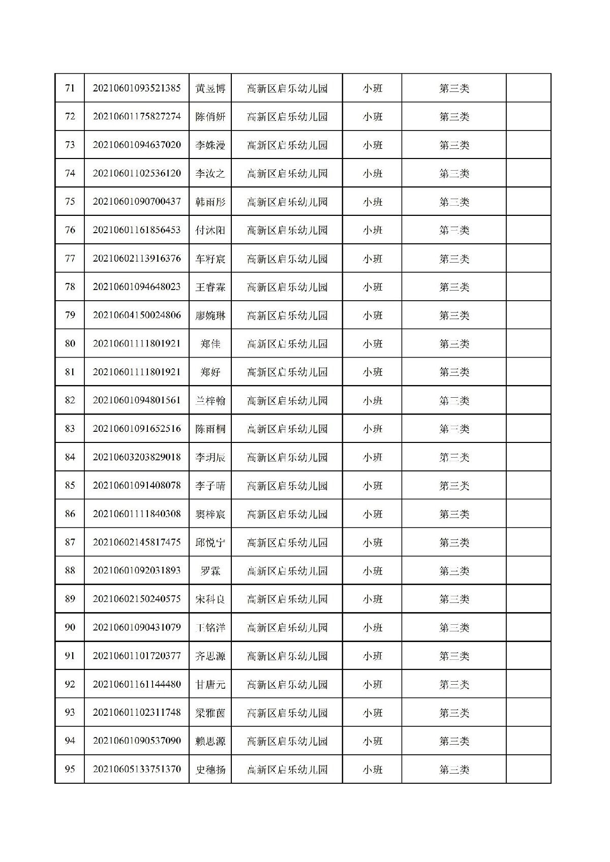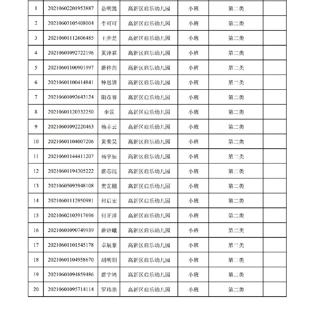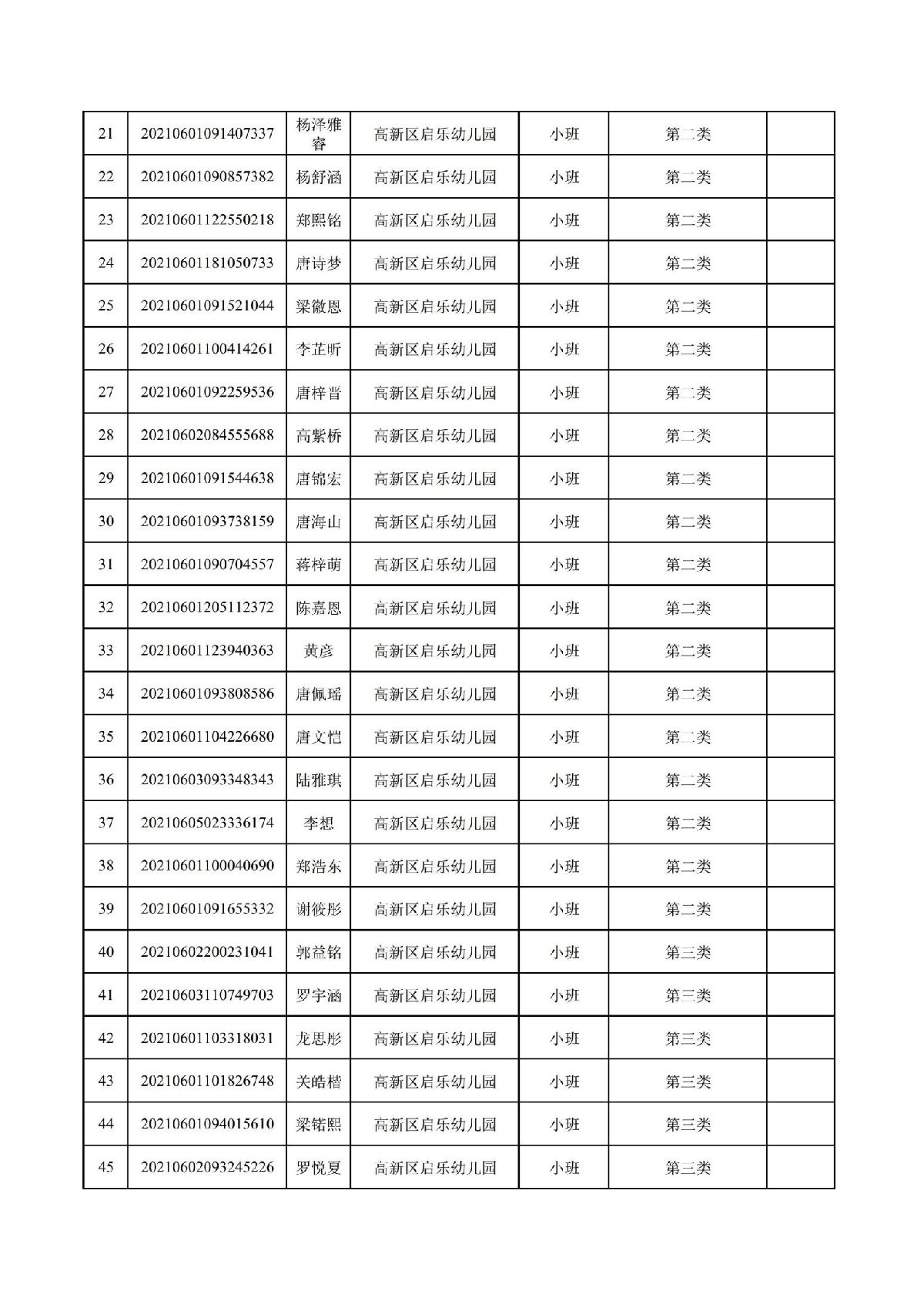 珠海高新区启乐幼儿园2021年报读资格审核通过名单