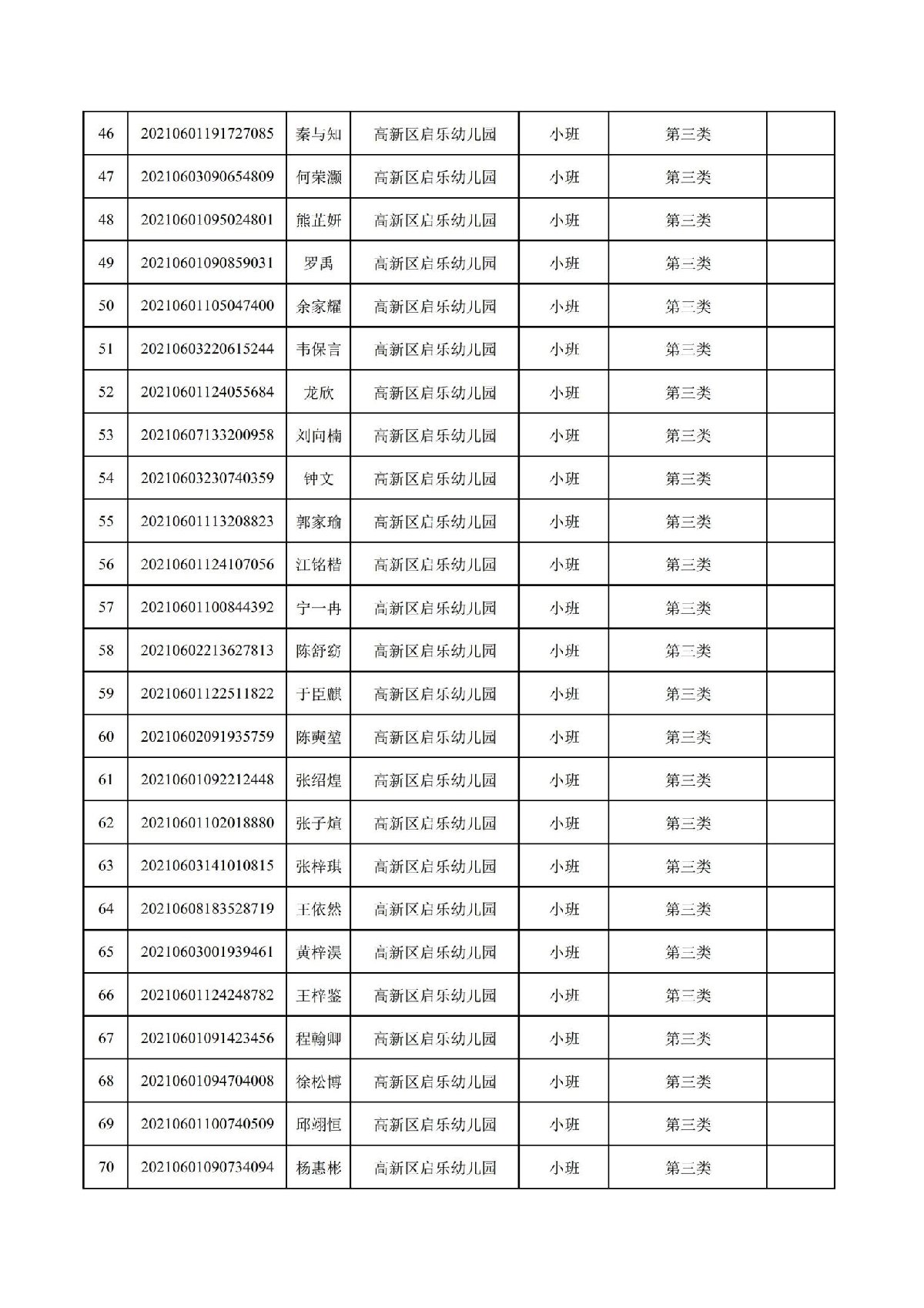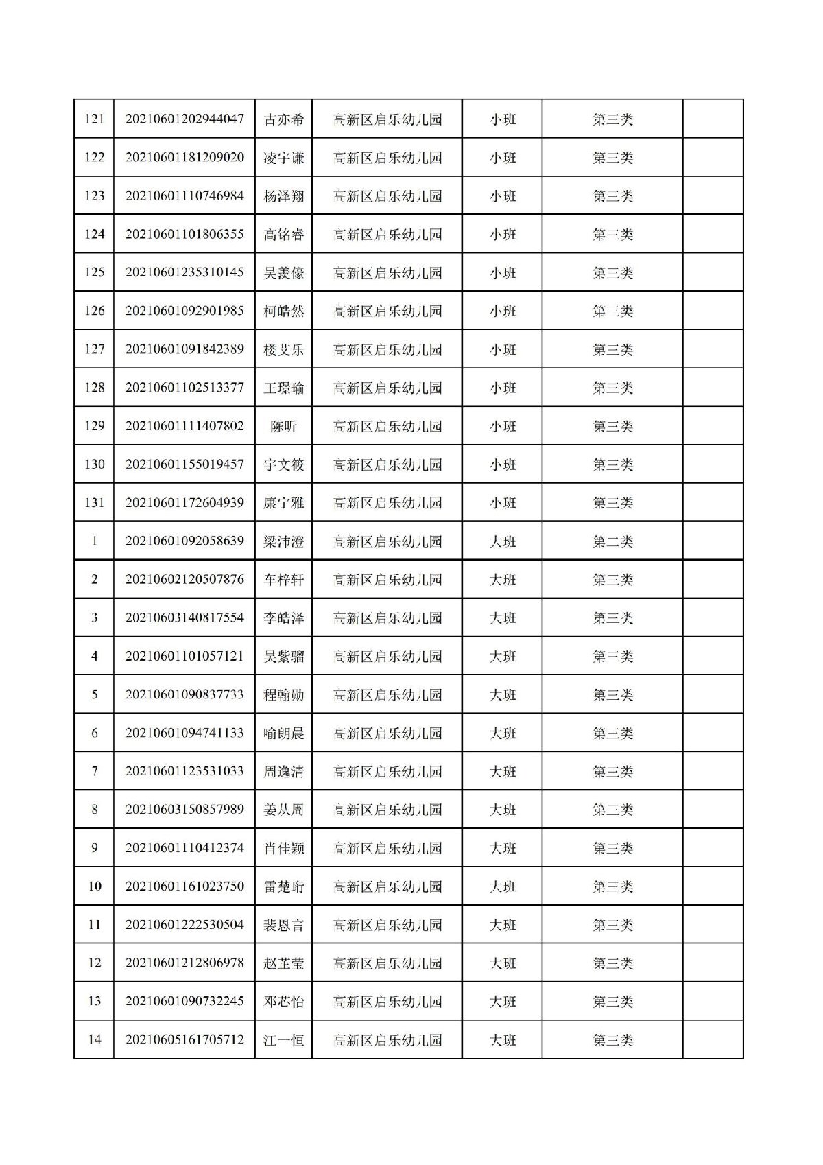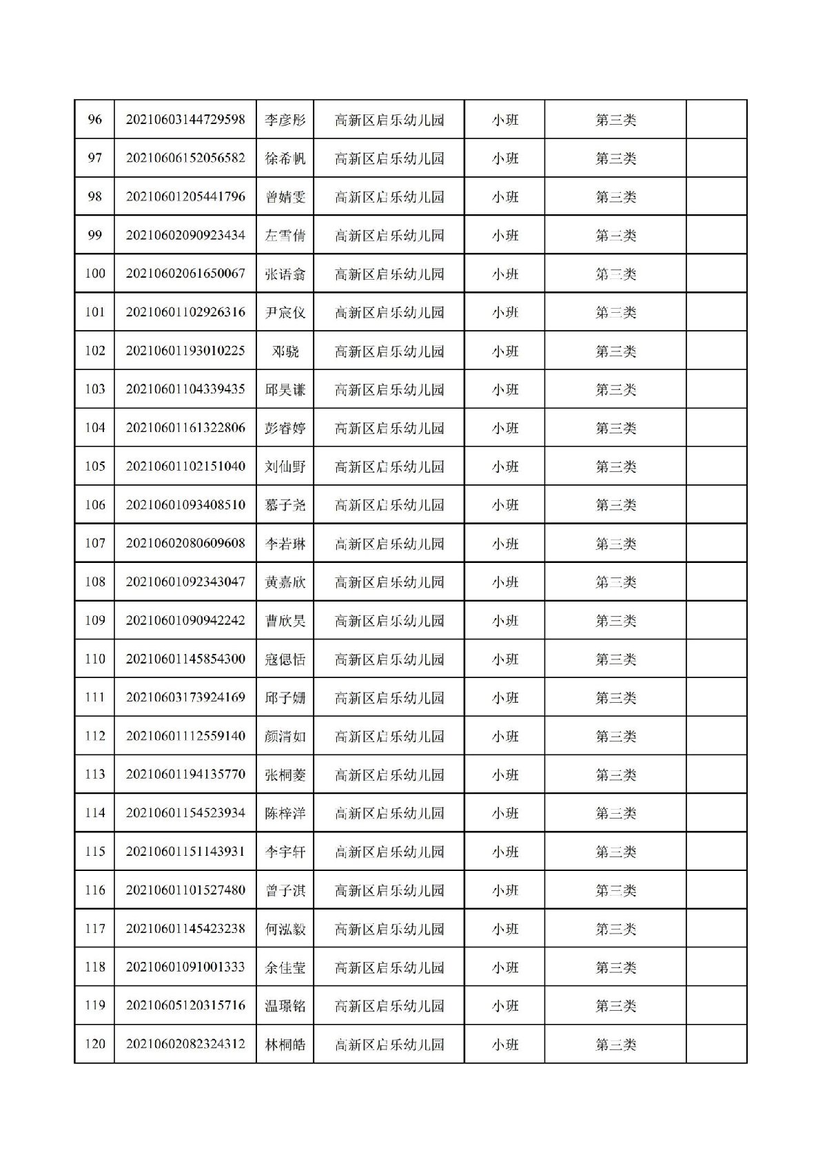 珠海高新区启乐幼儿园2021年报读资格审核通过名单
