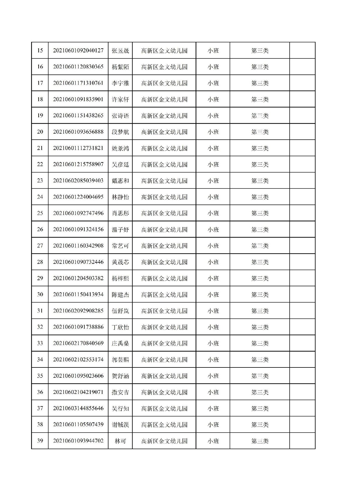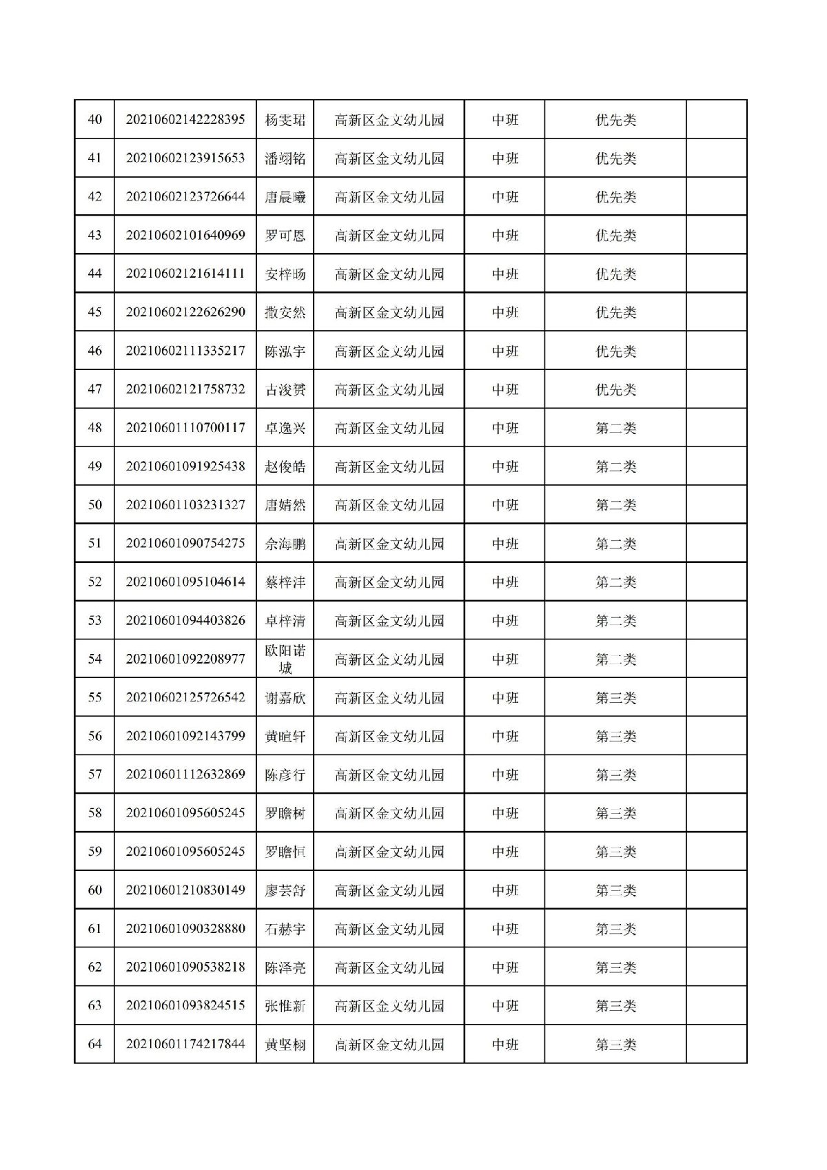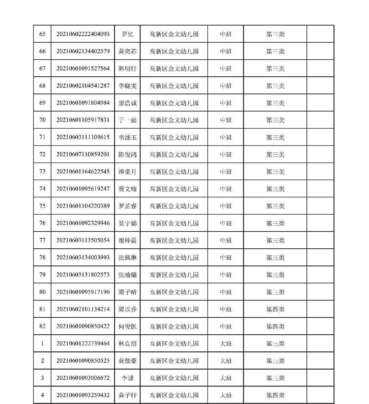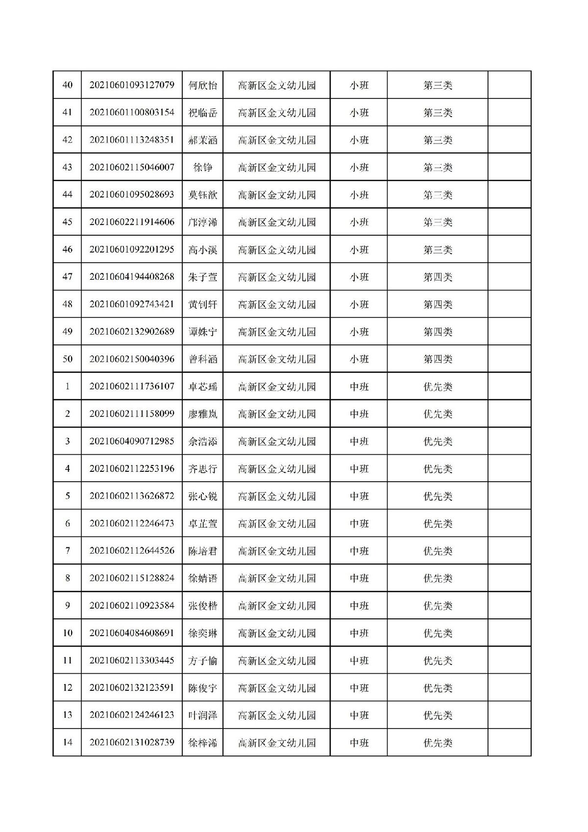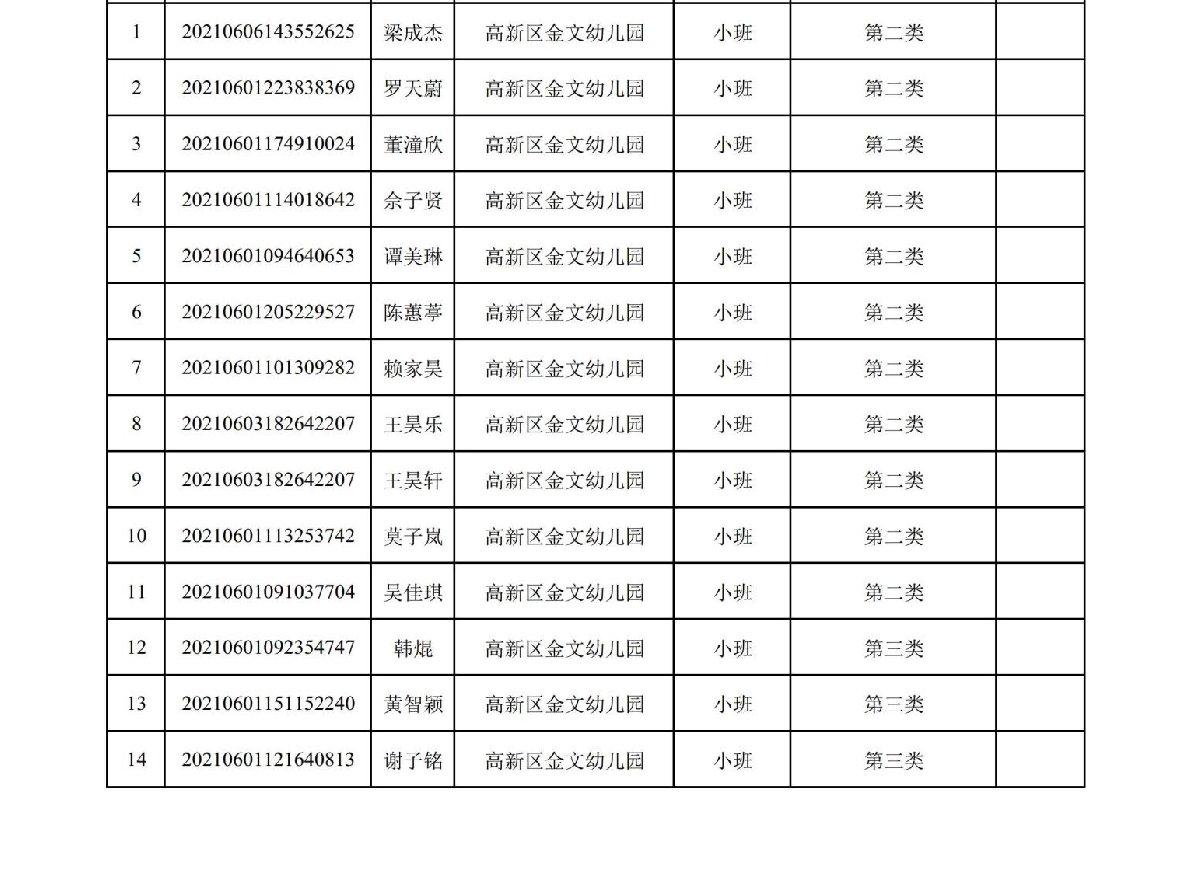珠海高新区金文幼儿园2021年符合报名资格名单