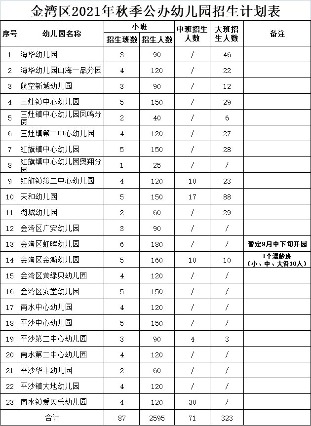 珠海金湾区2021年秋季公办幼儿园招生细则