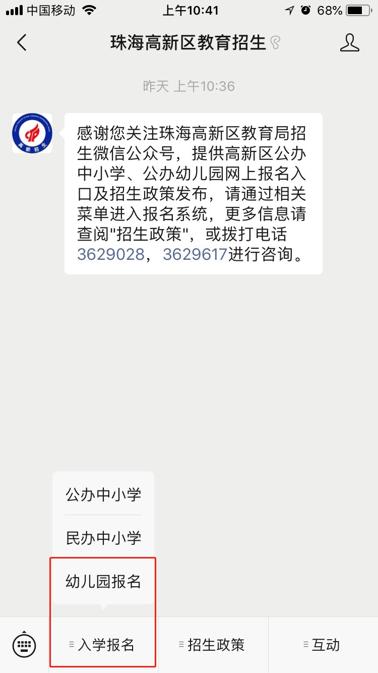 报名公众号:“珠海高新区教育招生”
