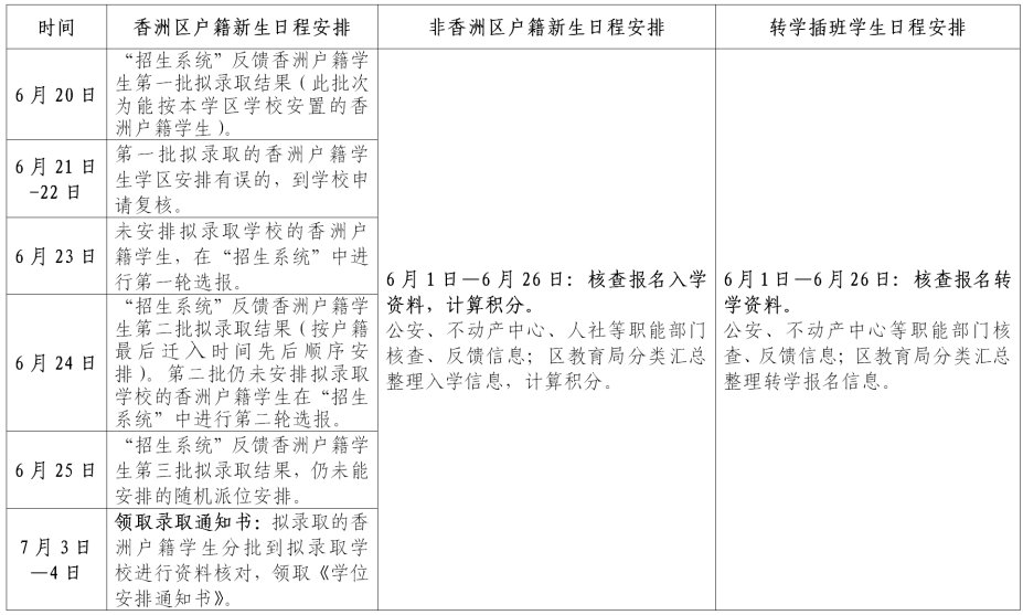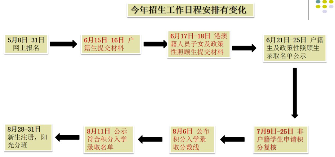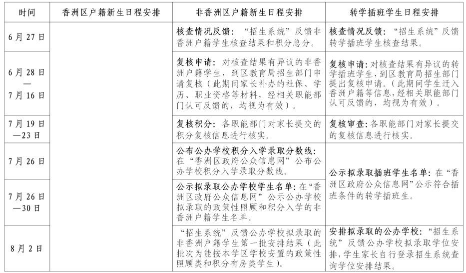 ◆公布积分入学录取分数线:公办学校录取分数线(7月26日);政府购买民办学校学位录取分数线(8月10日)