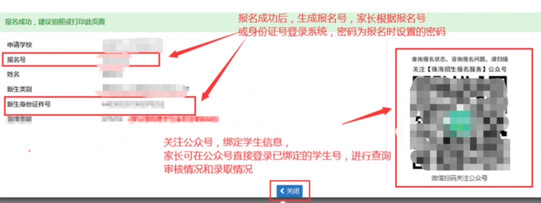 家长报名成功后会弹出二维码,家长用微信扫描后即可绑定学生信息。