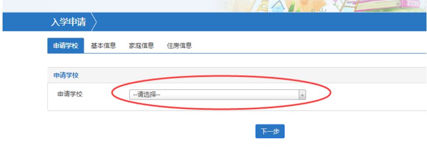 进入网址后,报名小学入学的在第一排入口,请进入学校所在的区进行报名;报名初中入学的在第二排入口,请进入学校所在的区进行报名。
