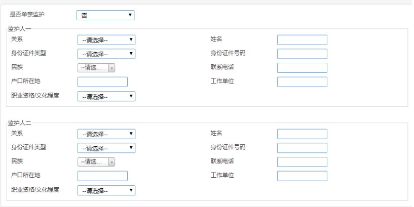 ➤是否单亲监护:如选择是,则只须填写一位监护人信息;否则需填写两位(如实填写,学校审查)。