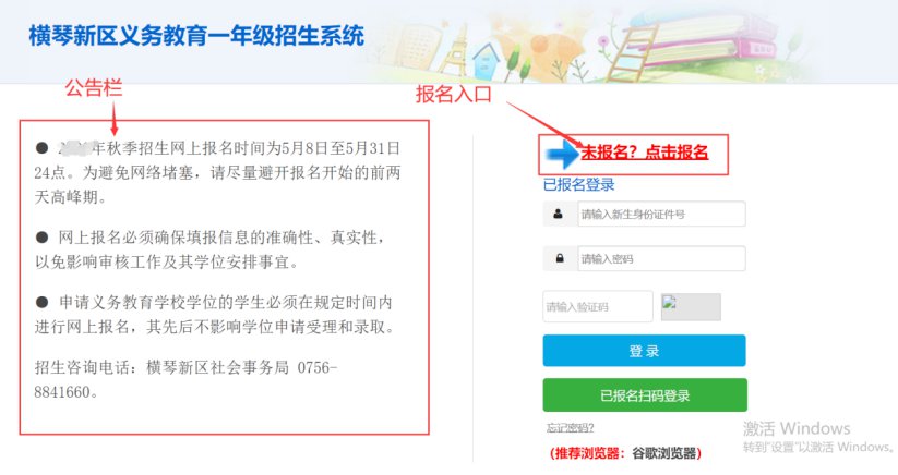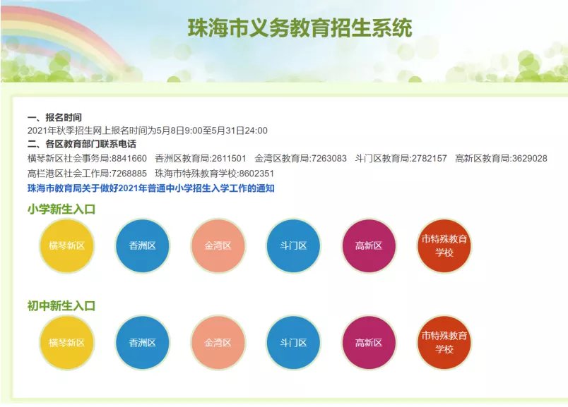(以横琴新区小一为例,香洲区和高新区以实际报名页面为准)