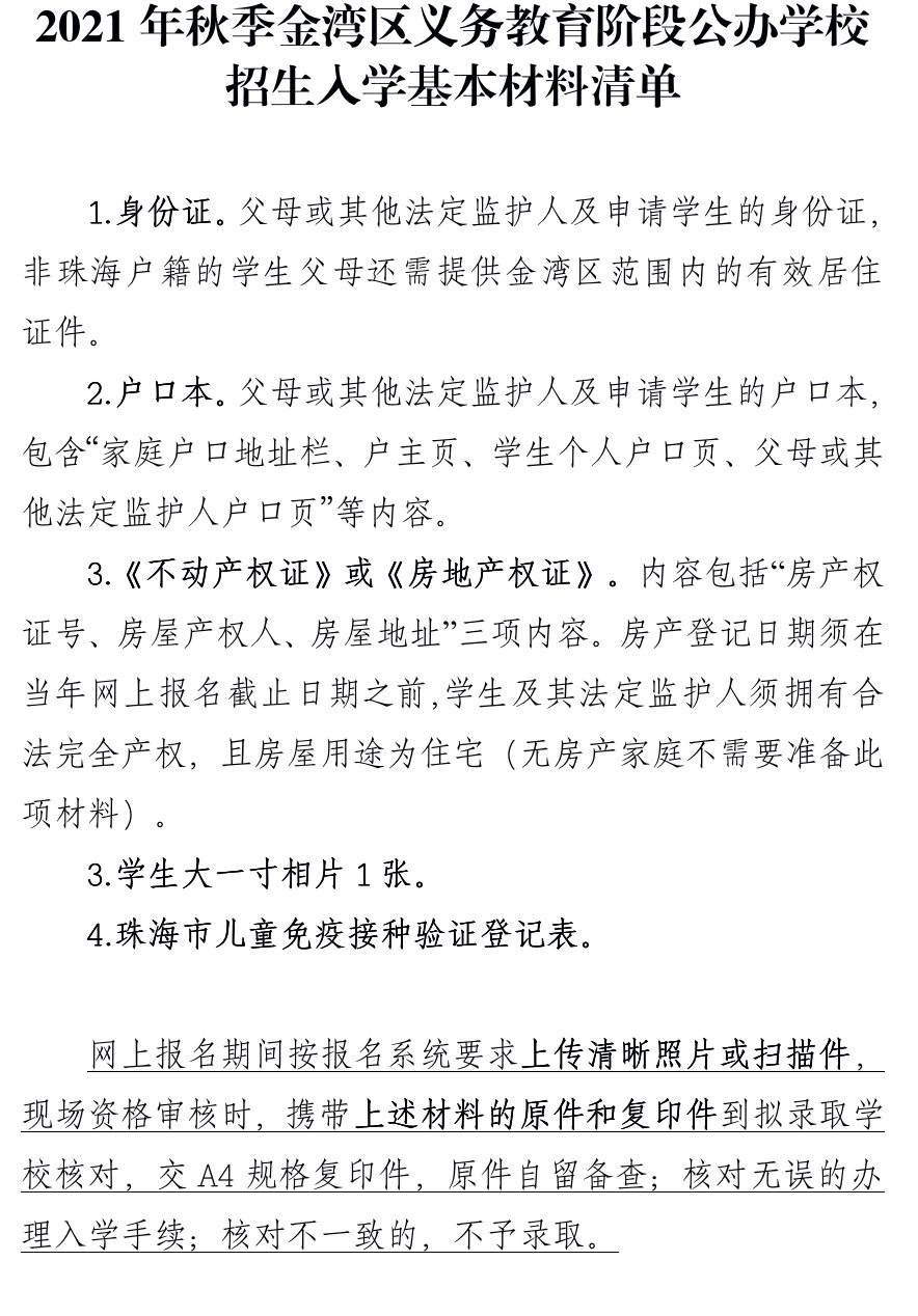 6.2021年秋季金湾区义务教育阶段公办学校招生入学基本材料清单