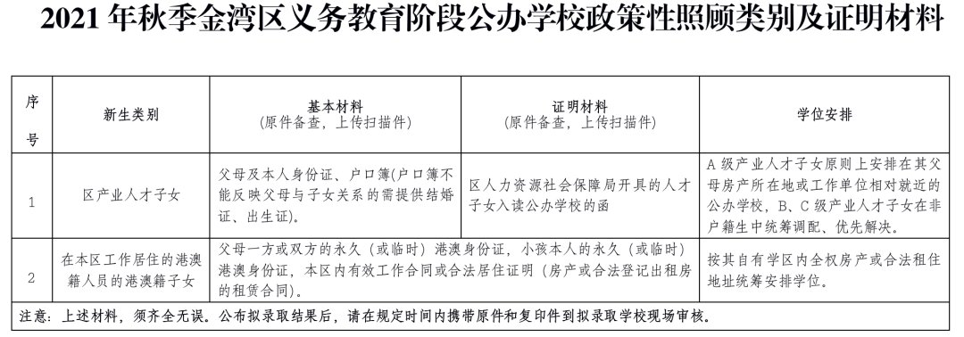 3.2021年秋季金湾区义务教育阶段公办学校政策性照顾类别及证明材料一览表