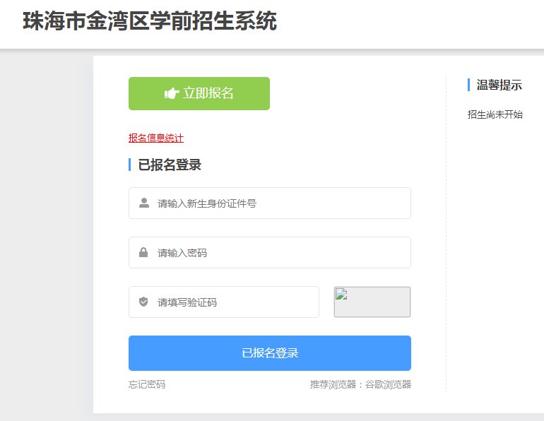 报名网站:珠海市金湾区学前招生系统(报名入口)