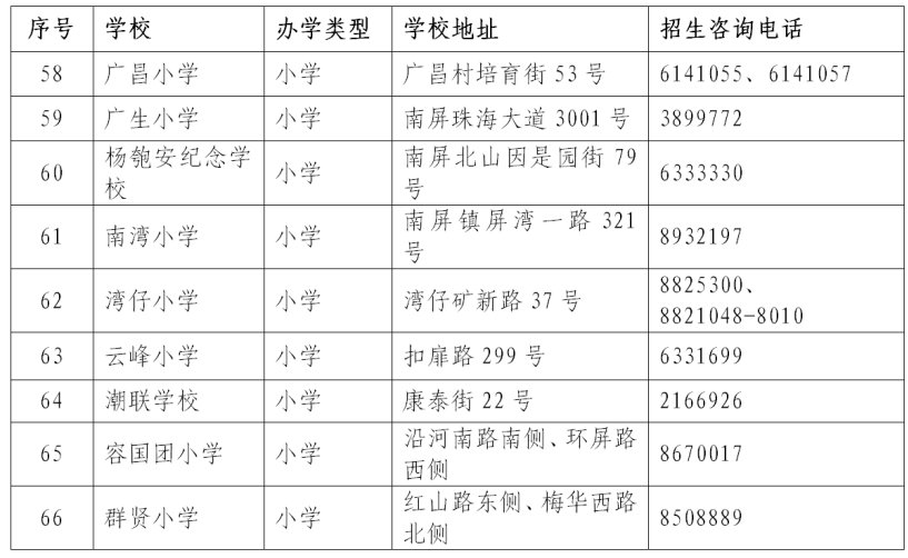 2021年秋季香洲区公办学校招生咨询电话