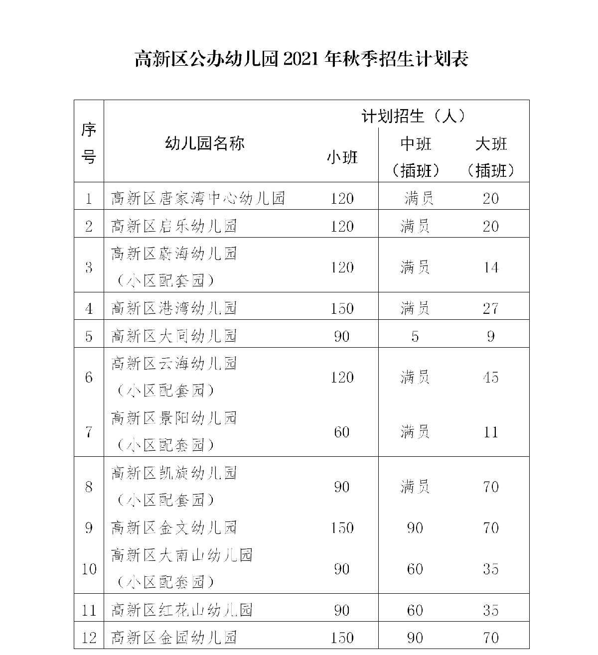 2021珠海市高新区公办幼儿园招生计划+招生对象
