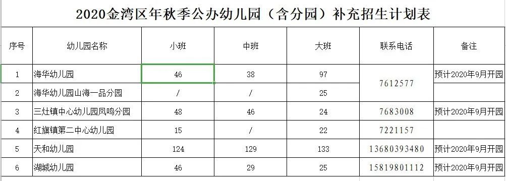 2020年金湾区公办幼儿园招生计划 2021年金湾区公立幼儿园报名情况