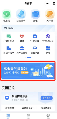 (1)进入小程序后,在首页点击图片“高考天气提前知”;