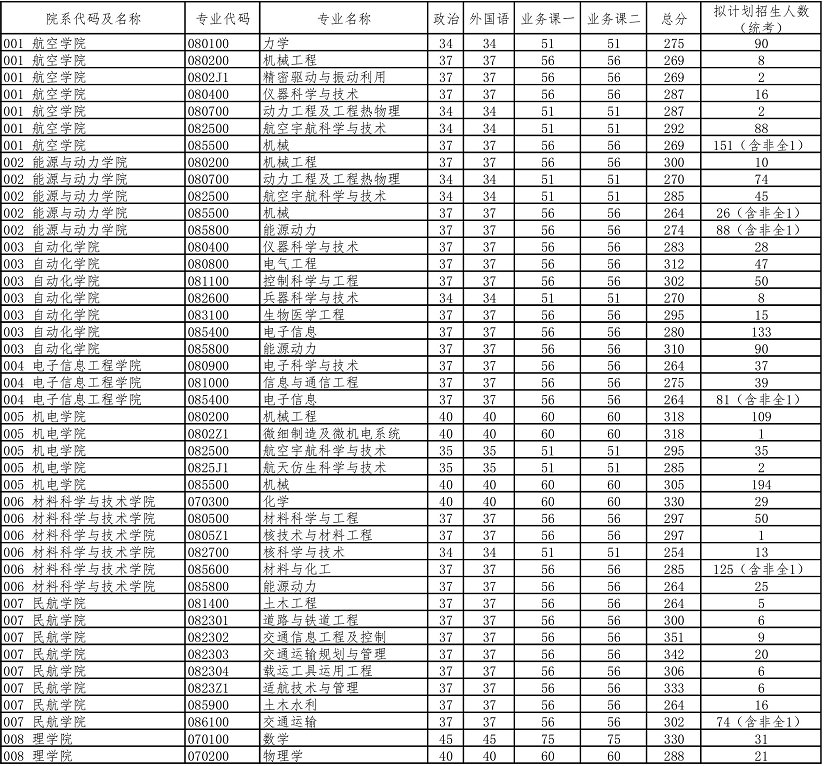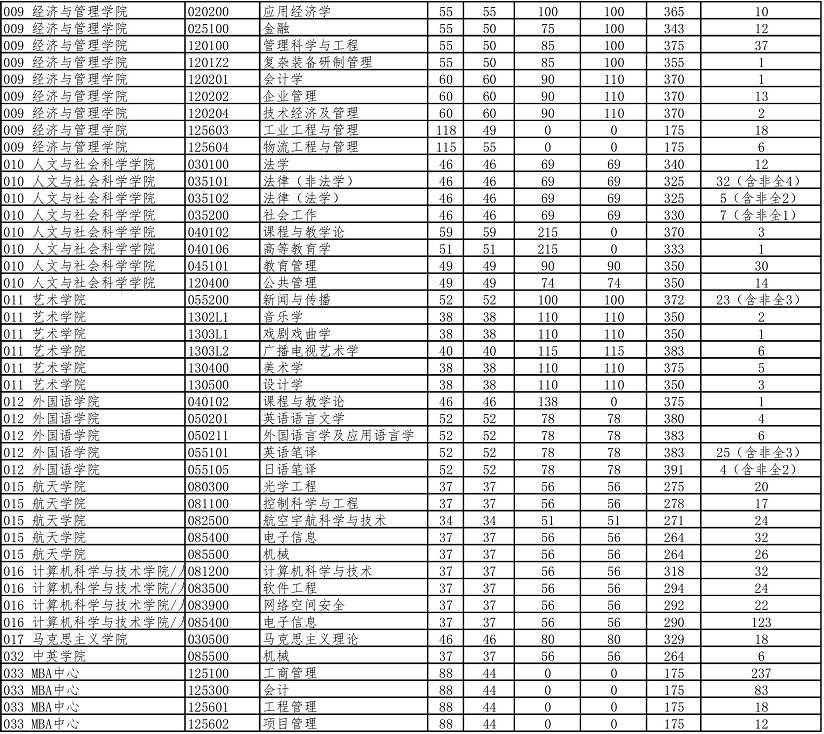 南京航空航天大学2020年硕士研究生复试分数线