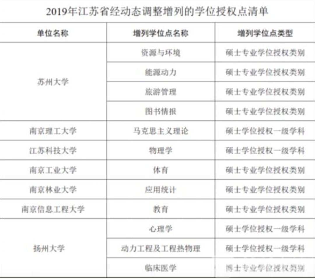 除此之外,江苏省还增列了以下12个学位授权点: