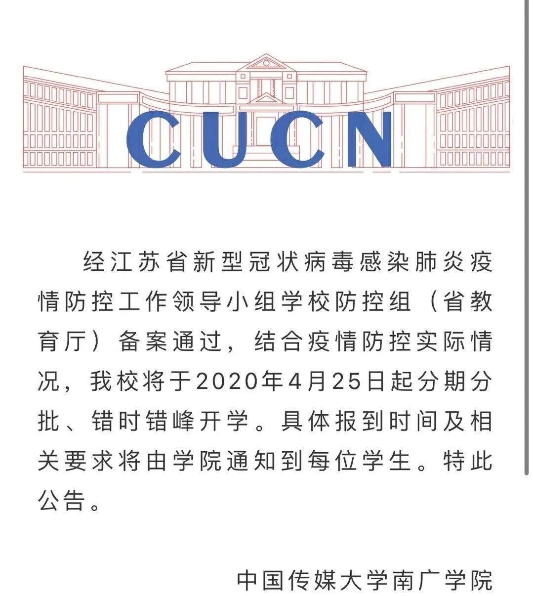 2020中国传媒大学南广学院开学时间(中国传媒大学南广学院招生电话)