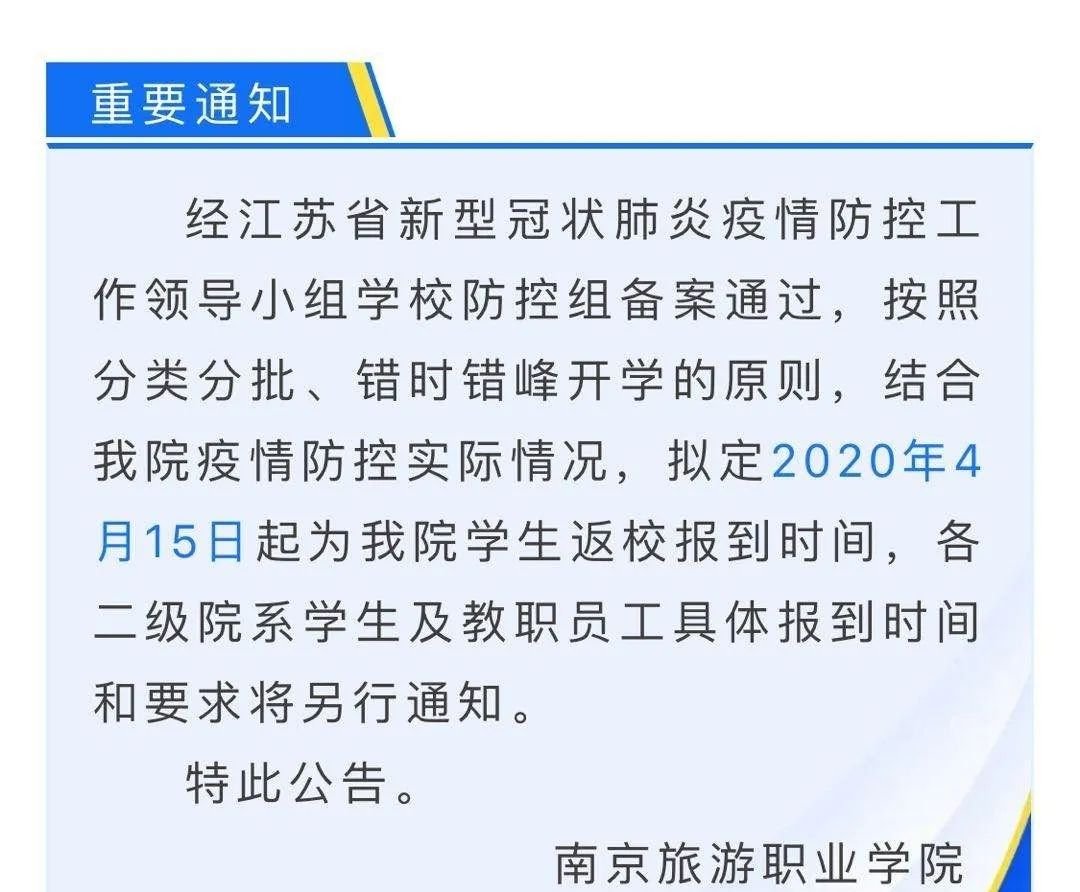 根据江苏省开学规定,南京高校以4月13日为开学起始时间做好开学准备工作,具体开学时间经批准后由学校发布。