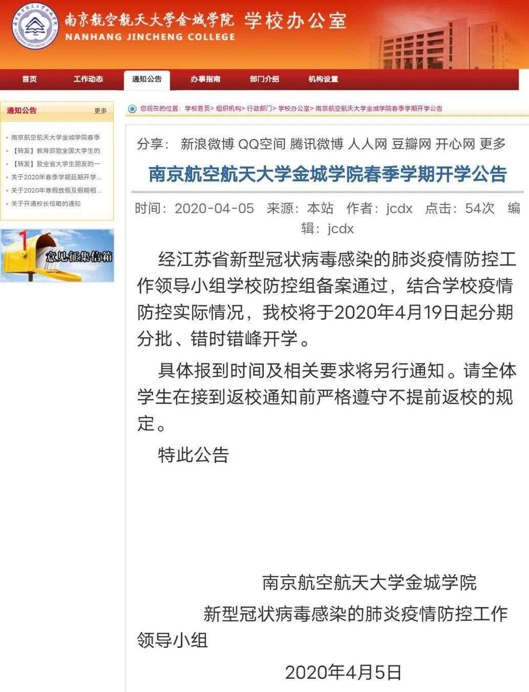 继后,经江苏省新型冠状病毒感染肺炎疫情防控工作领导小组学校防控组备案通过,结合疫情防控实际情况,南京仙林大学城各高校自4月15日起,分期分批、错时错峰开学。