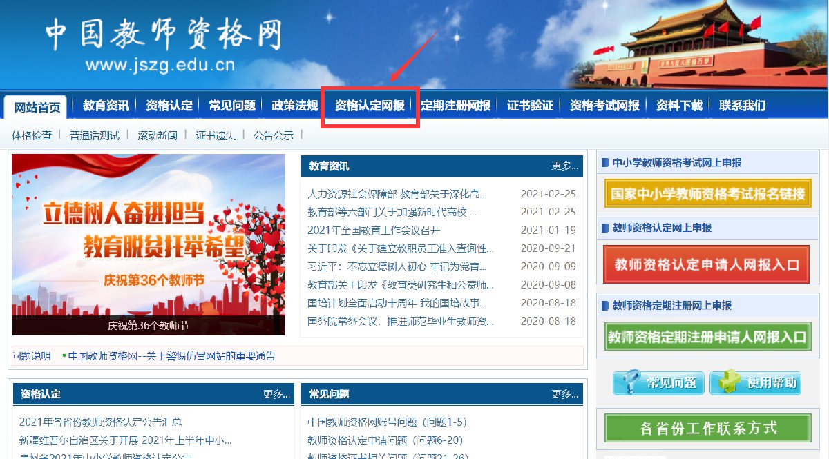 符合申请条件的申请人可在开放时间选择“教师资格认定申请人网报入口”。