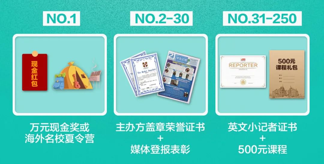 第三轮闯关(暂定6月):现场英文展示与评选——获胜者将有机会获得万元奖金&全球名校暑假游学名额