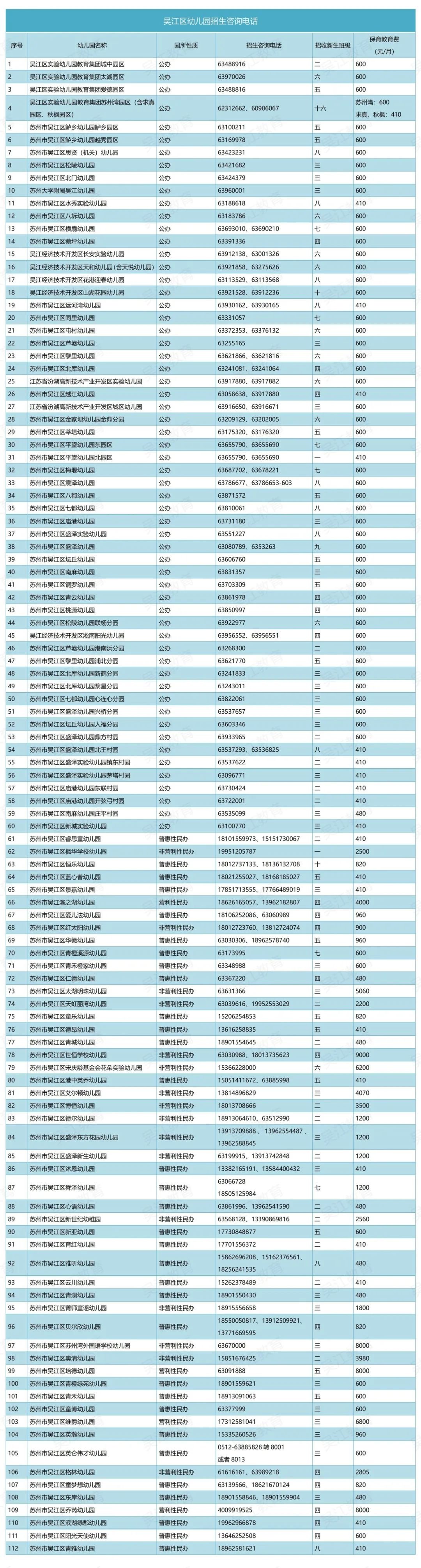 2022年吴江区幼儿园招生咨询电话汇总一览