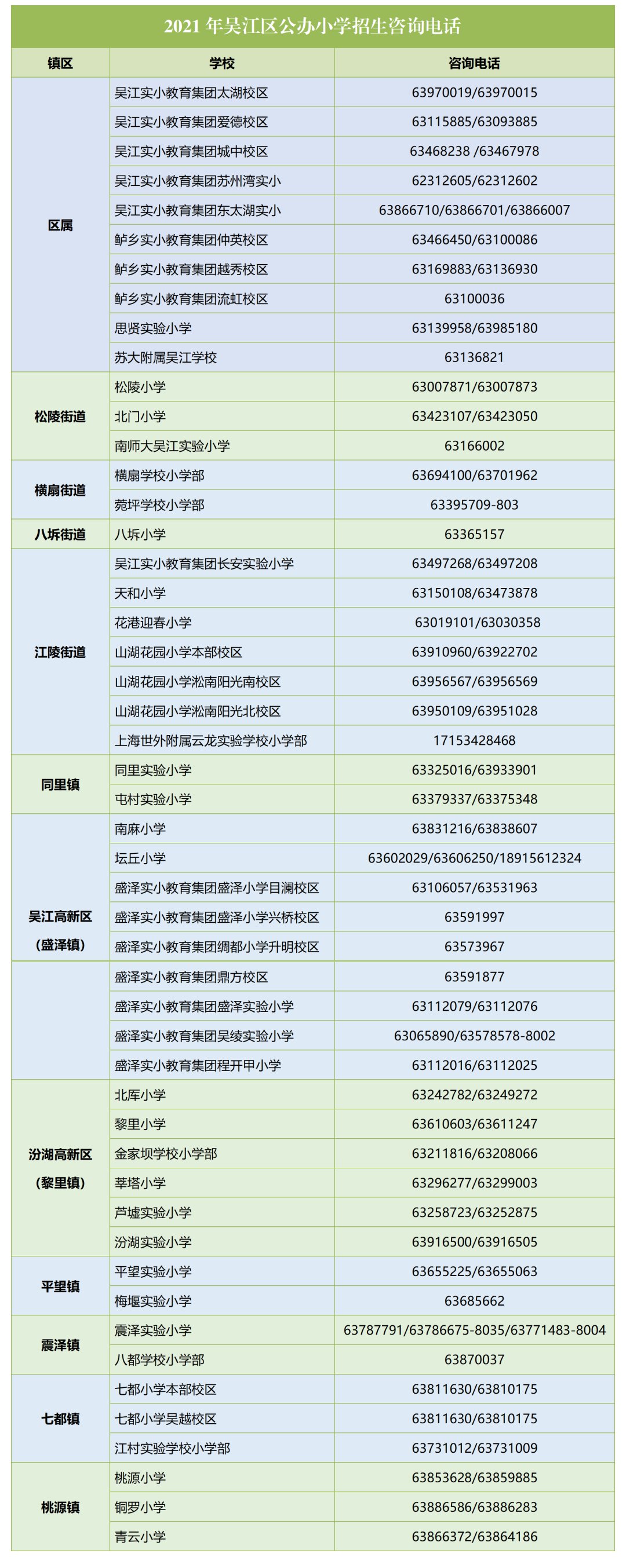2021吴江区公办小学招生咨询电话 吴江小学招生条件2019