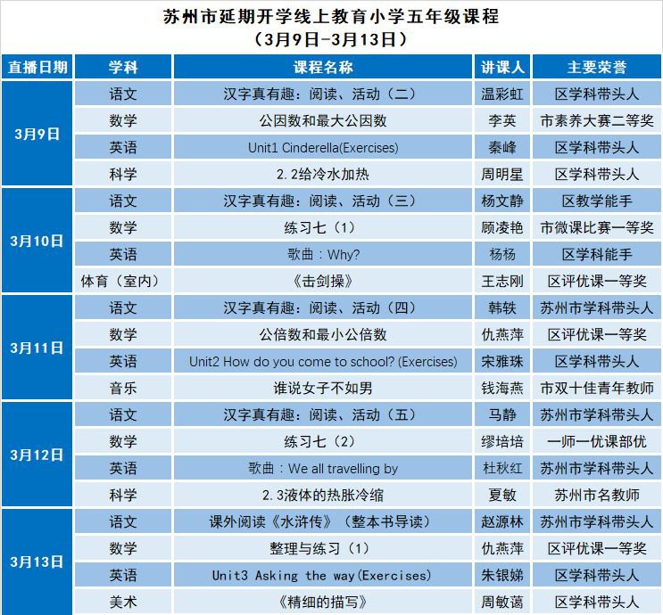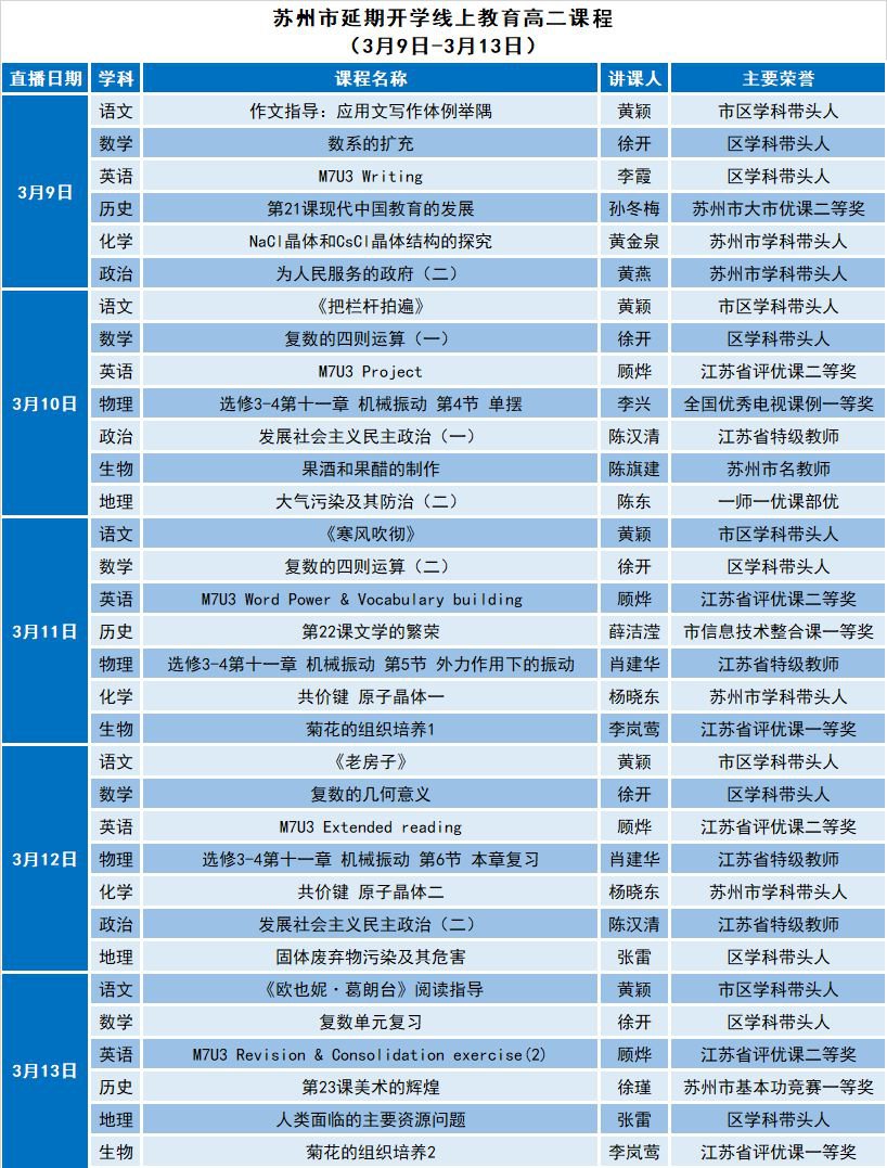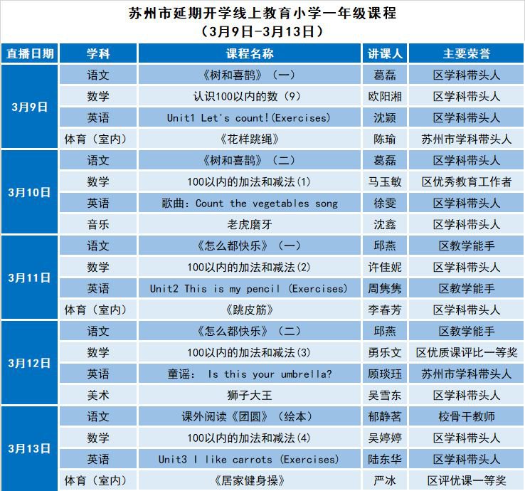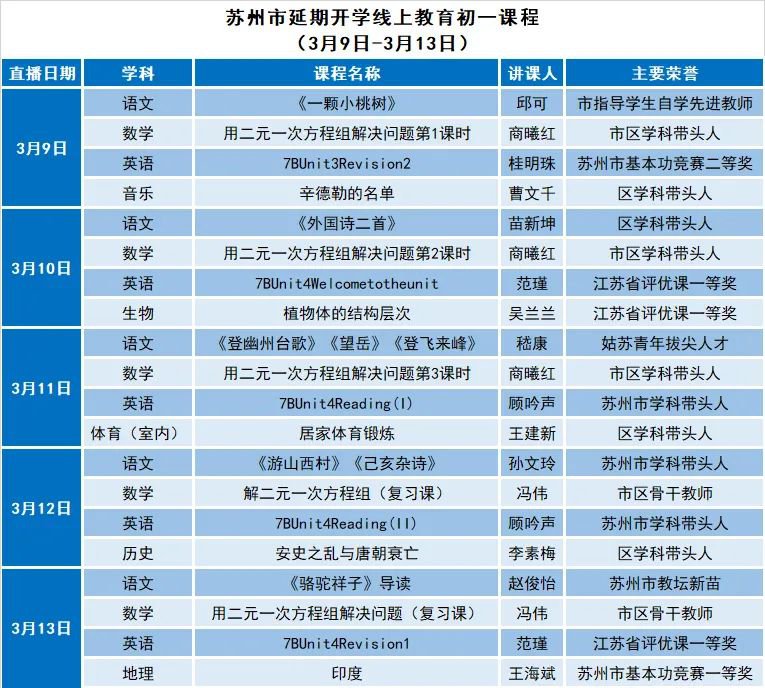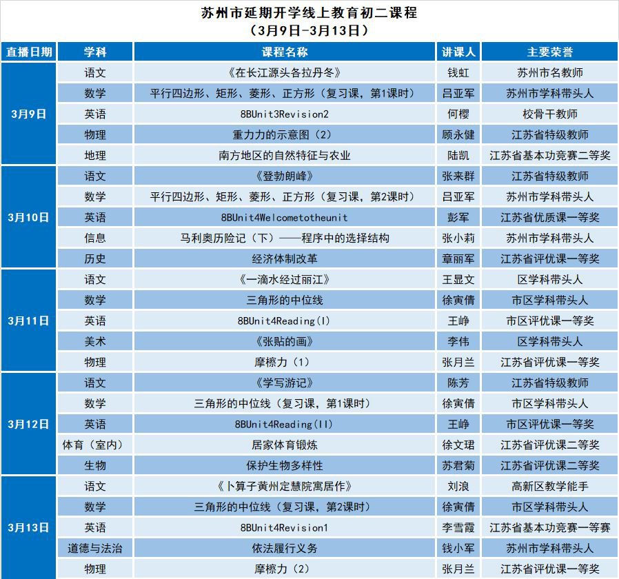 苏州延期开学线上教育课程表(苏州延期开学线上教育课程表图片)